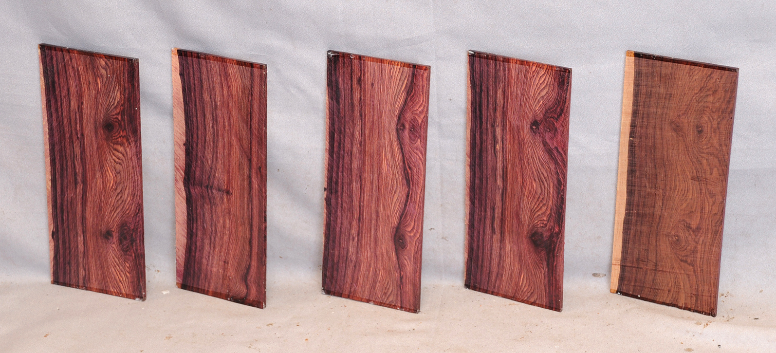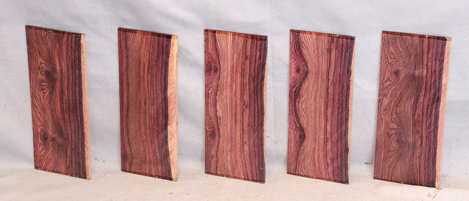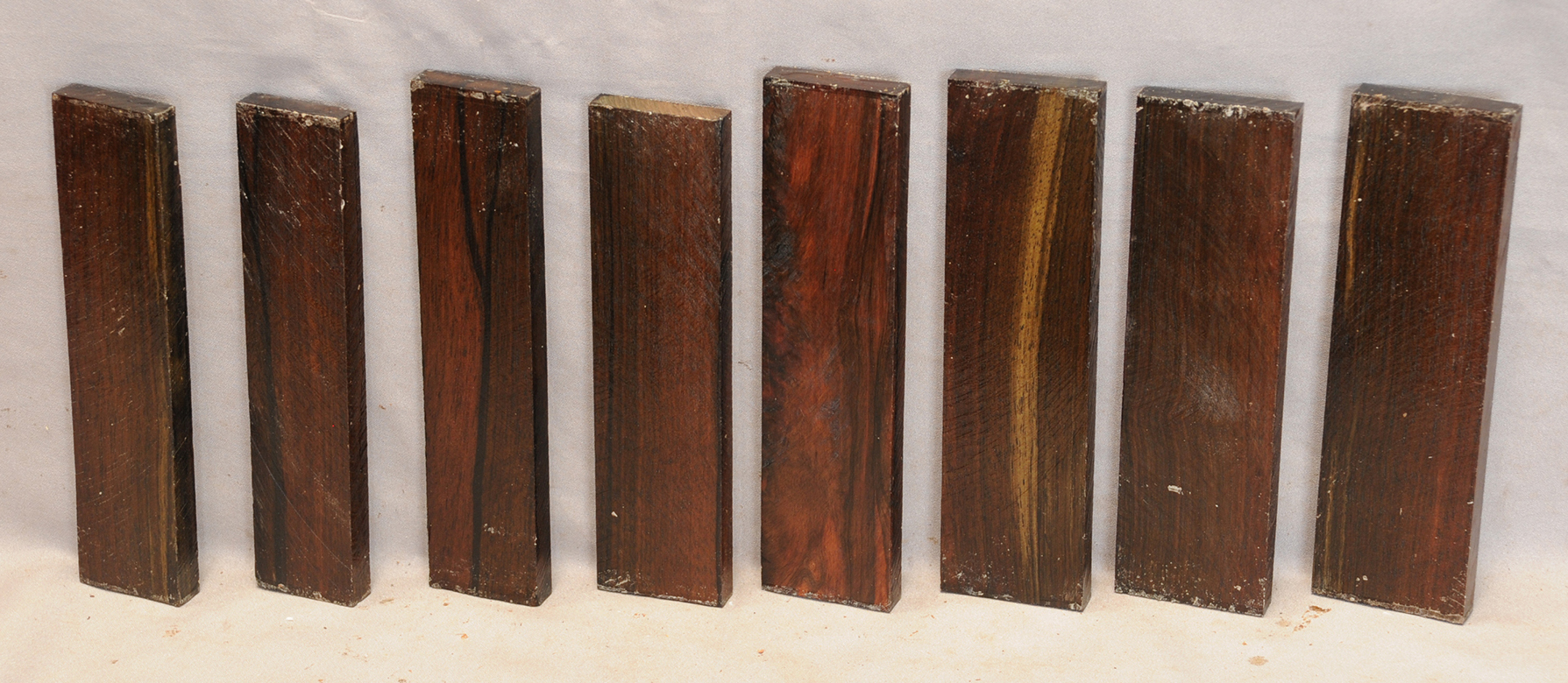 This Rosewood species has a reddish-brown to dark brown colored heartwood contrasting the almost white sapwood. The dust has a sweet odor. It is an excellent furniture/case works/jewelry box wood and even though it has a medium texture it does take a nice polish. We also offer it as a musical instrument wood (see guitar fingerboards and backs & sides elsewhere on the site). It has a very "crisp" tap tone with good sustain.