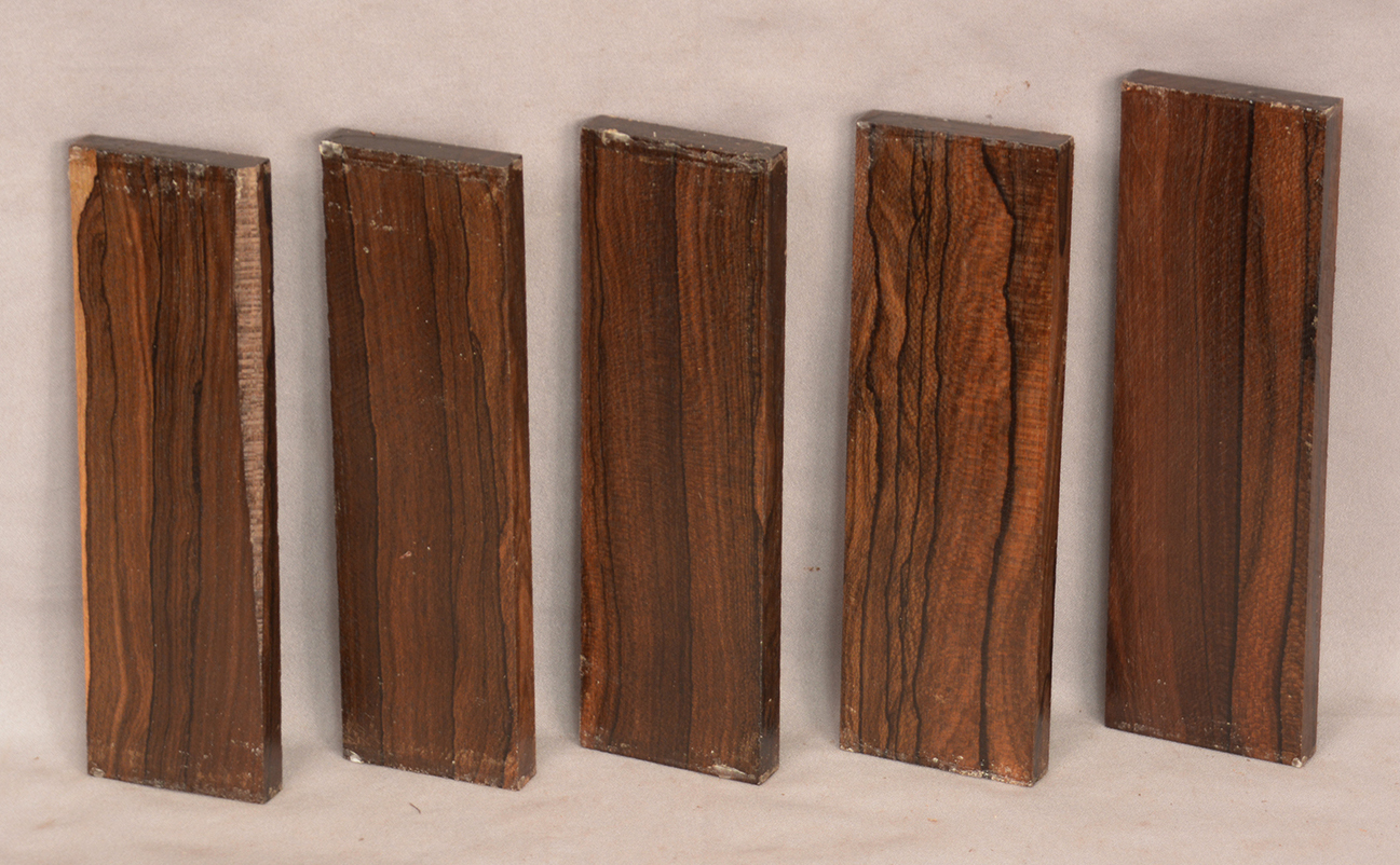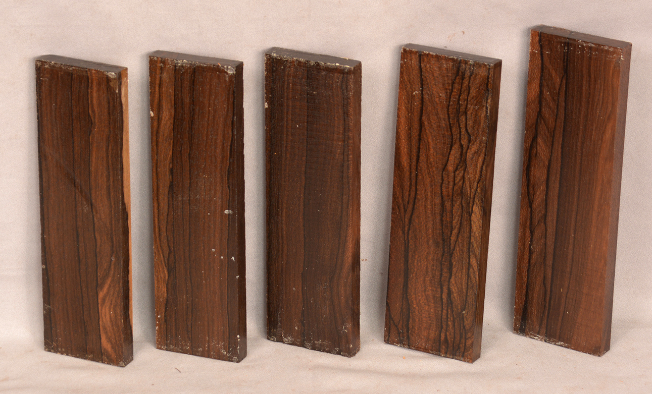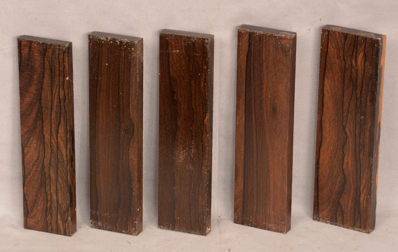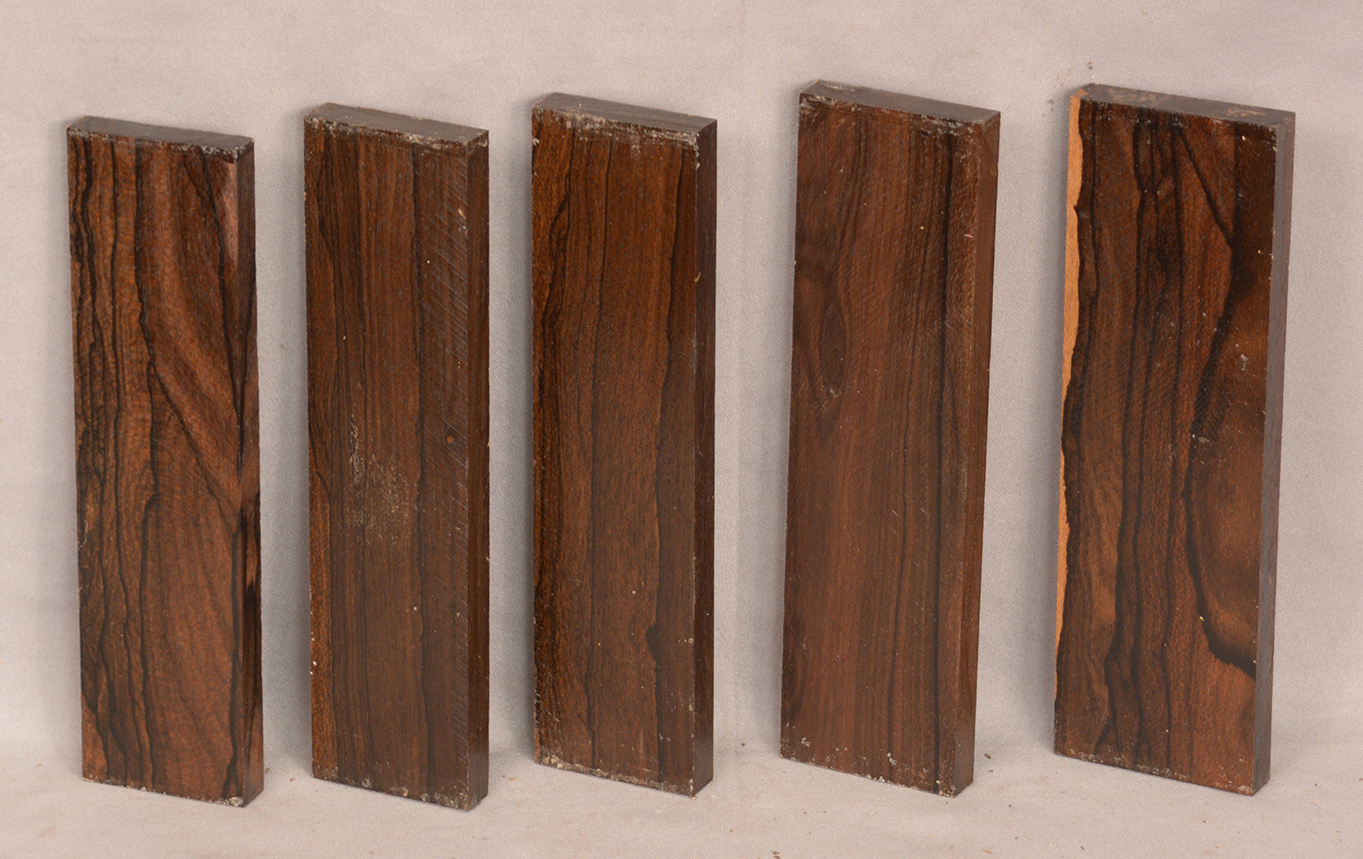 This Rosewood species has a reddish-brown to dark brown colored heartwood contrasting the almost white sapwood. The dust has a sweet odor. It is an excellent furniture/case works/jewelry box wood and even though it has a medium texture it does take a nice polish. We also offer it as a musical instrument wood (see guitar fingerboards and backs & sides elsewhere on the site). It has a very "crisp" tap tone with good sustain.