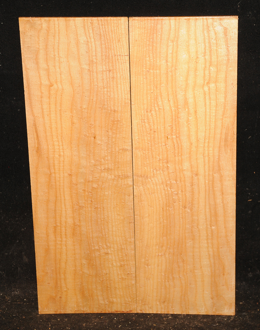 The heartwood is white or cream to light brown or reddish brown. Because of the generally small size of available logs, most sawmills produce flatsawn boards which will show a broken curl on the surface and a fiddleback curl on the quartersawn edge. Hard and heavy, 45 lbs/cu ft. Easy to work and takes a smooth polish. U.S.A.