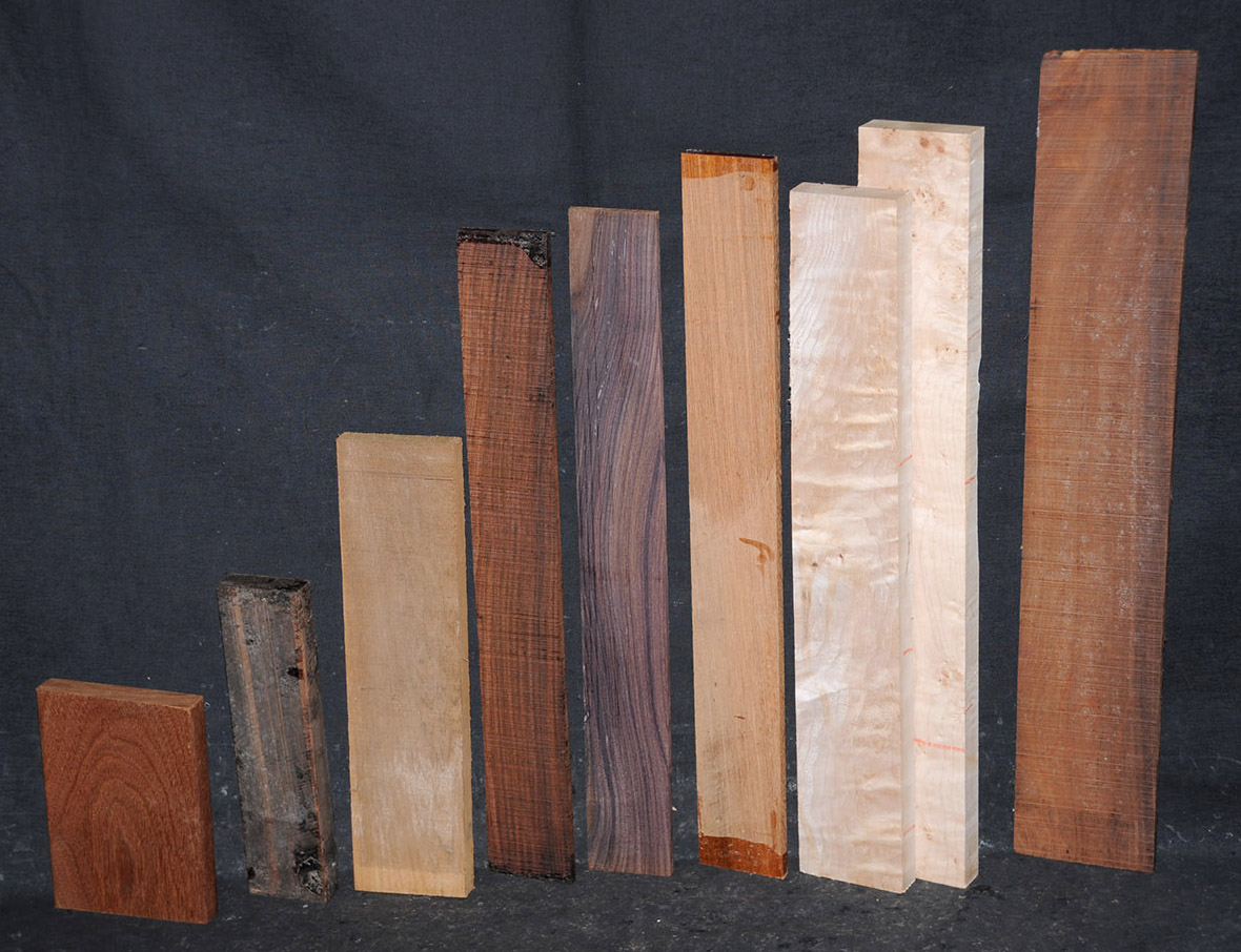 An assortment of woods with interesting grains, colors, and densities. Perfect for inlays, laminations, jewelry boxes, knife handles, etc.