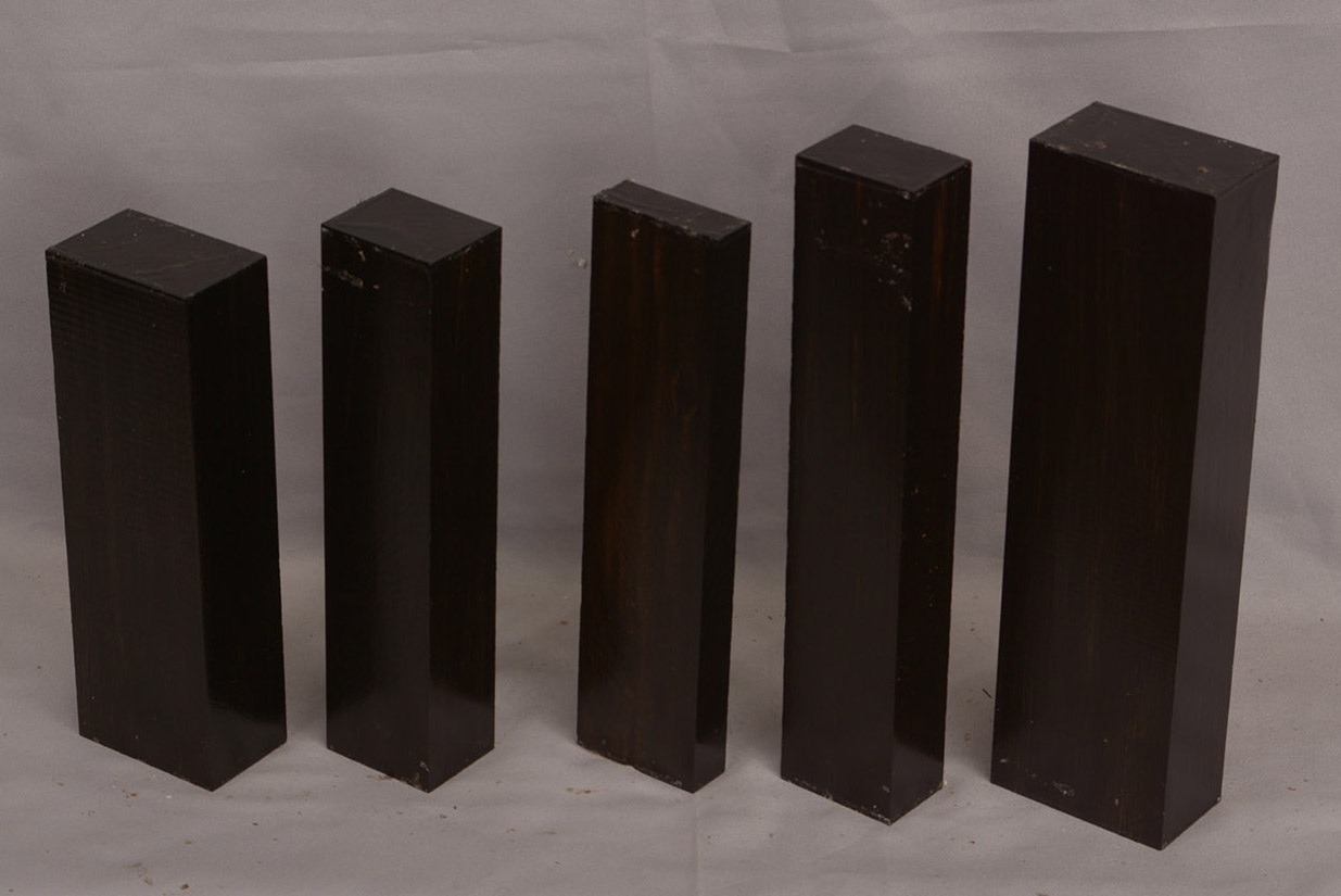 Sometimes called Gabon or Gaboon, this Ebony is sometimes jet black but oftentimes has grayish streaks that mostly disappear when finished or after the made object has been put into service. This Ebony has a marked resistance to checking that is characteristic of some of the Indian and Asian species. It has a wonderful texture and is easily carved, planed, turned, and milled. It is fairly fine-grained and takes a high polish. This Ebony usually originates in either Cameroon or Nigeria and the logs are rough hewn in the forest and oftentimes brought to the nearest road by human porters. With the disappearance of other species of black Ebony this species is fast becoming the Ebony of choice.