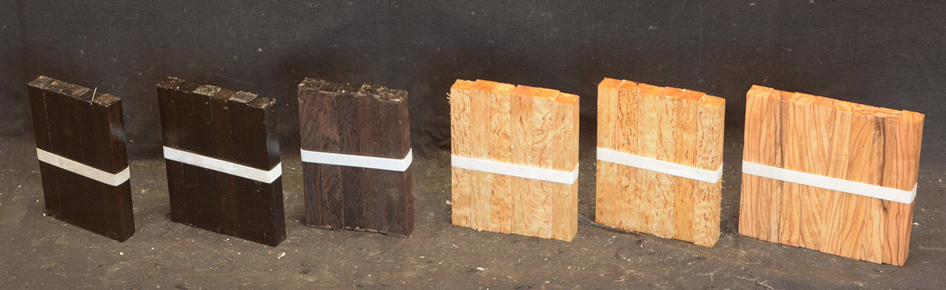 A & B are West African Ebony. A has 5 pieces. B has 6 pieces.