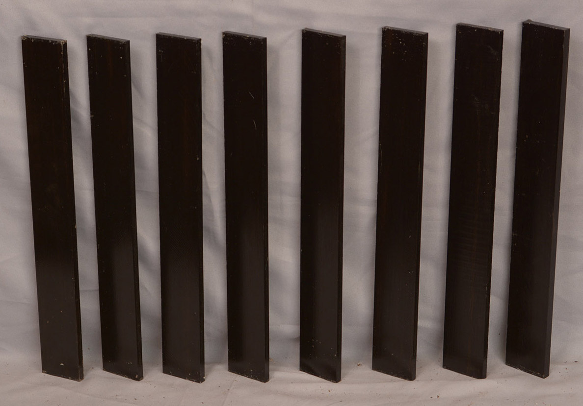 Sometimes called Gabon or Gaboon, this Ebony is sometimes jet black but oftentimes has grayish streaks that mostly disappear when finished or after the made object has been put into service. This Ebony has a marked resistance to checking that is characteristic of some of the Indian and Asian species. It has a wonderful texture and is easily carved, planed, turned, and milled. It is fairly fine-grained and takes a high polish. This Ebony usually originates in either Cameroon or Nigeria and the logs are rough hewn in the forest and oftentimes brought to the nearest road by human porters. With the disappearance of other species of black Ebony this species is fast becoming the Ebony of choice.