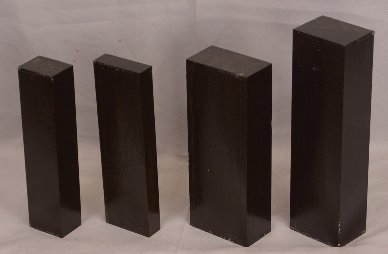 Sometimes called Gabon or Gaboon, this Ebony is sometimes jet black but oftentimes has grayish streaks that mostly disappear when finished or after the made object has been put into service. This Ebony has a marked resistance to checking that is characteristic of some of the Indian and Asian species. It has a wonderful texture and is easily carved, planed, turned, and milled. It is fairly fine-grained and takes a high polish. This Ebony usually originates in either Cameroon or Nigeria and the logs are rough hewn in the forest and oftentimes brought to the nearest road by human porters. With the disappearance of other species of black Ebony this species is fast becoming the Ebony of choice.