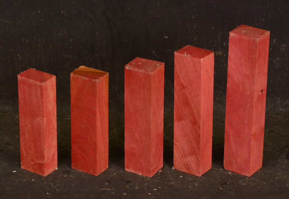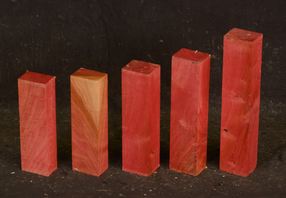 A fairly rare wood from Southern Africa ranging in color from light pink to watermelon red. At one time it was described as being "rarer than diamonds". It is very dense, hard and heavy and takes a very high polish. Beautiful for turnery, inlays and other precious items.