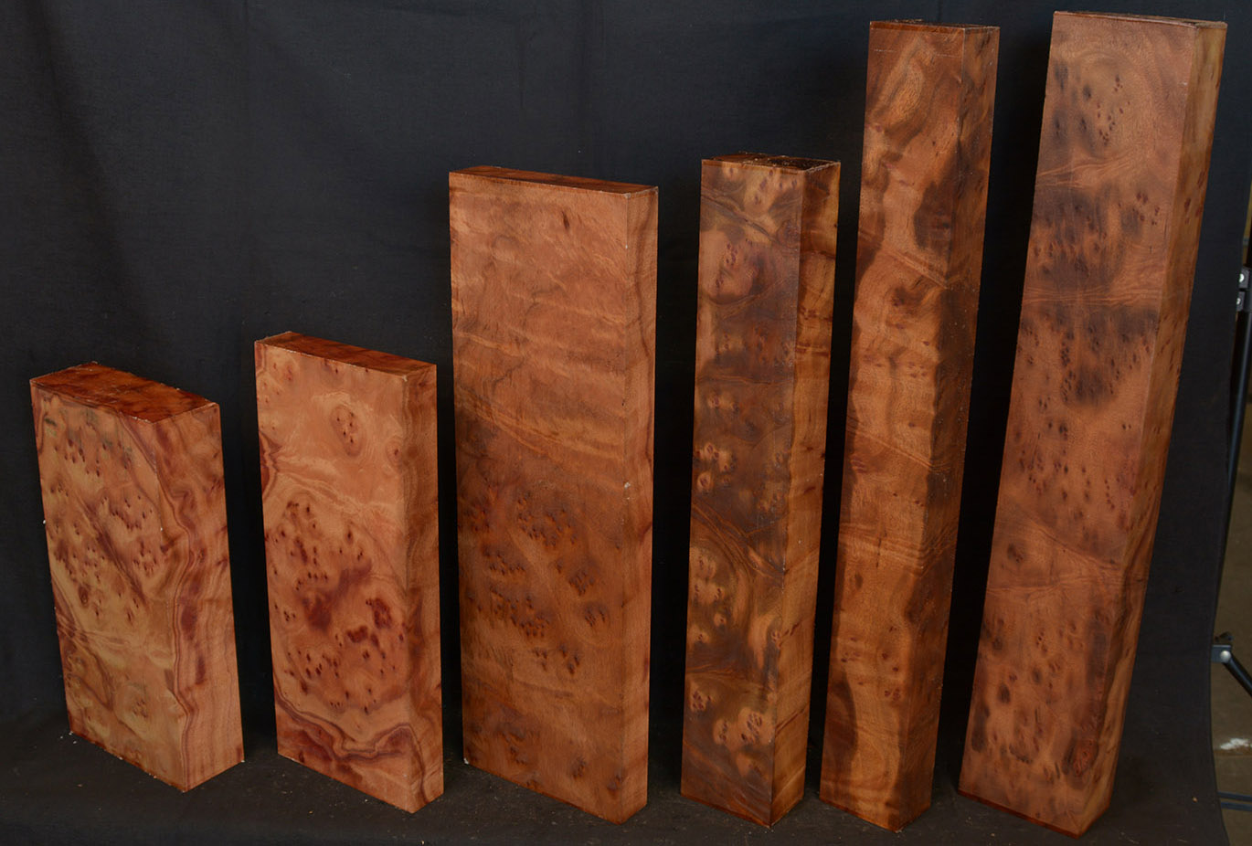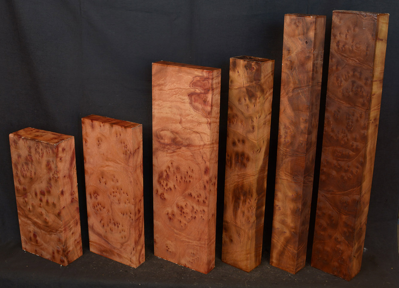 This rare burl is from S.E. Asia and is seldom seen on the world market. It is fine-grained and varies in color from a light reddish-brown to almost scarlet. It is easy to work and has a very pungent, spicy scent. For a burl it is remarkably stable. Green to partially air dried.