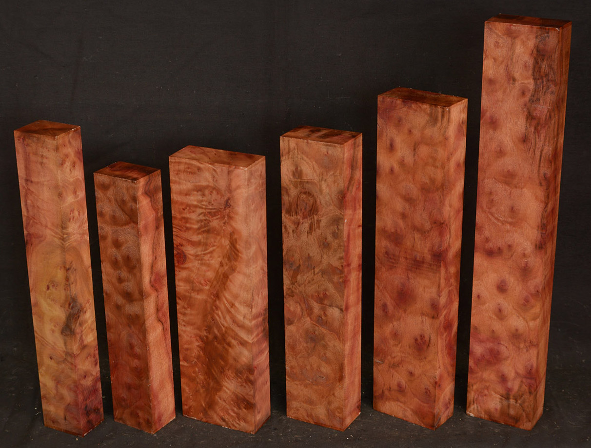 This rare burl is from S.E. Asia and is seldom seen on the world market. It is fine-grained and varies in color from a light reddish-brown to almost scarlet. It is easy to work and has a very pungent, spicy scent. For a burl it is remarkably stable. Green to partially air dried.