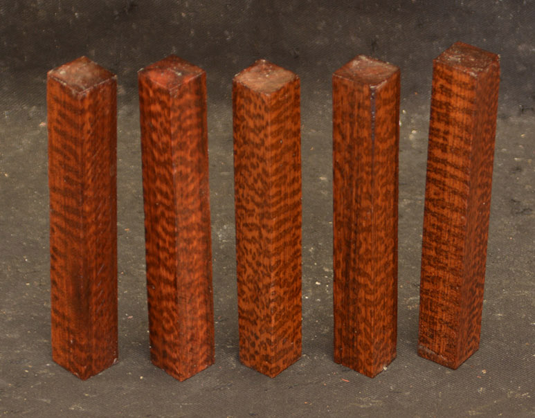 Also called Letterwood and Leopardwood. Color: dark red to reddish brown with irregular black speckles or stripes. Fine textured and highly lustrous. Very hard and heavy, 75-84 lbs/cu ft. Takes a beautiful finish. Very rare and very expensive. Guyana and Surinam.