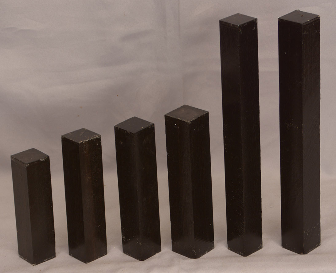 Sometimes called Gabon or Gaboon, this Ebony is sometimes jet black but oftentimes has grayish streaks that mostly disappear when finished or after the made object has been put into service. This Ebony has a marked resistance to checking that is characteristic of some of the Indian and Asian species. It has a wonderful texture and is easily carved, planed, turned, and milled. It is fairly fine-grained and takes a high polish. This Ebony usually originates in either Cameroon or Nigeria and the logs are rough hewn in the forest and oftentimes brought to the nearest road by human porters. With the disappearance of other species of black Ebony this species is fast becoming the Ebony of choice.