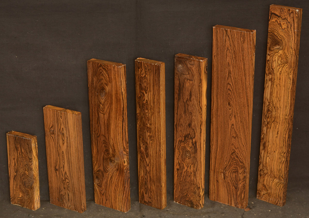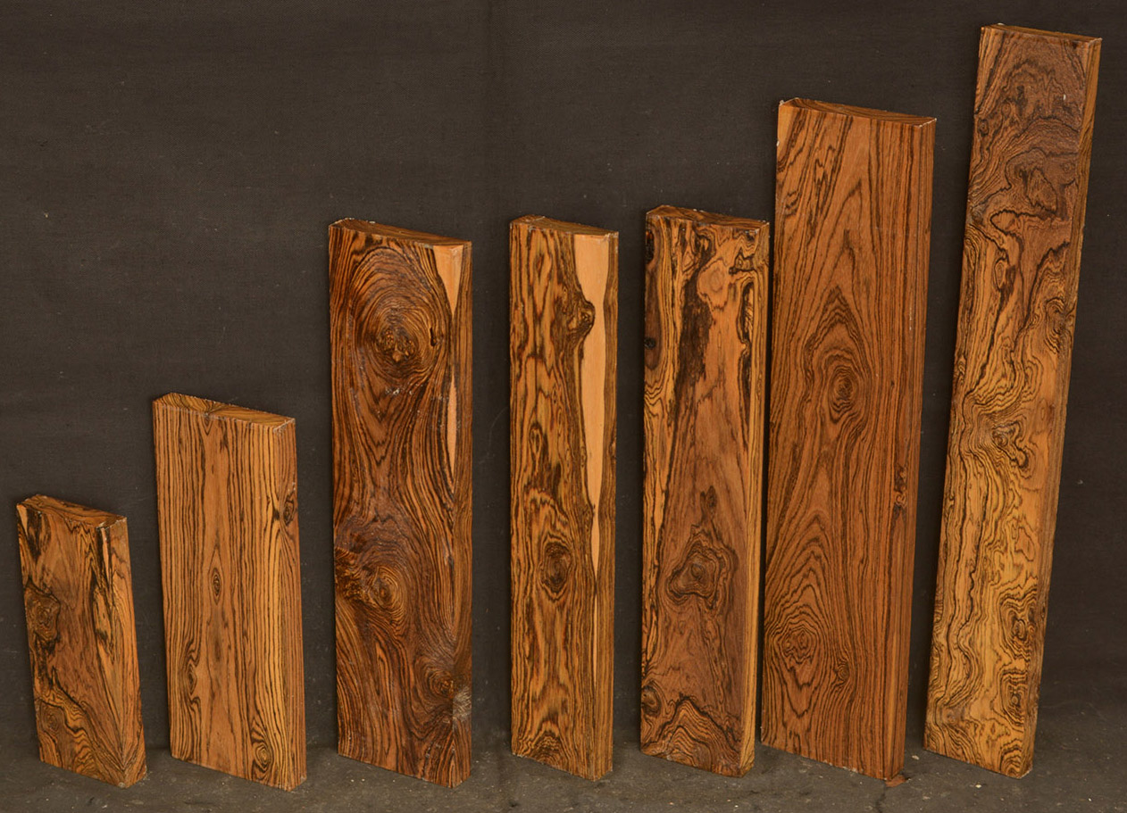 Bocote is an oily wood with a yellowish to dark brown color accented with irregular black stripes and streaks. It has a spicy smell and is hard, heavy and strong. It is easy to work and takes a very nice polish. This beautiful wood is seldom seen in woodworker's shops.