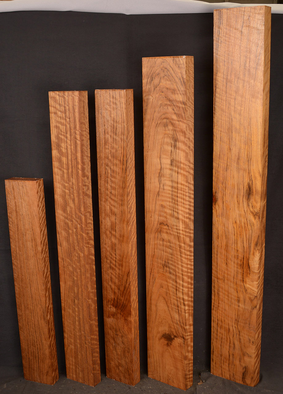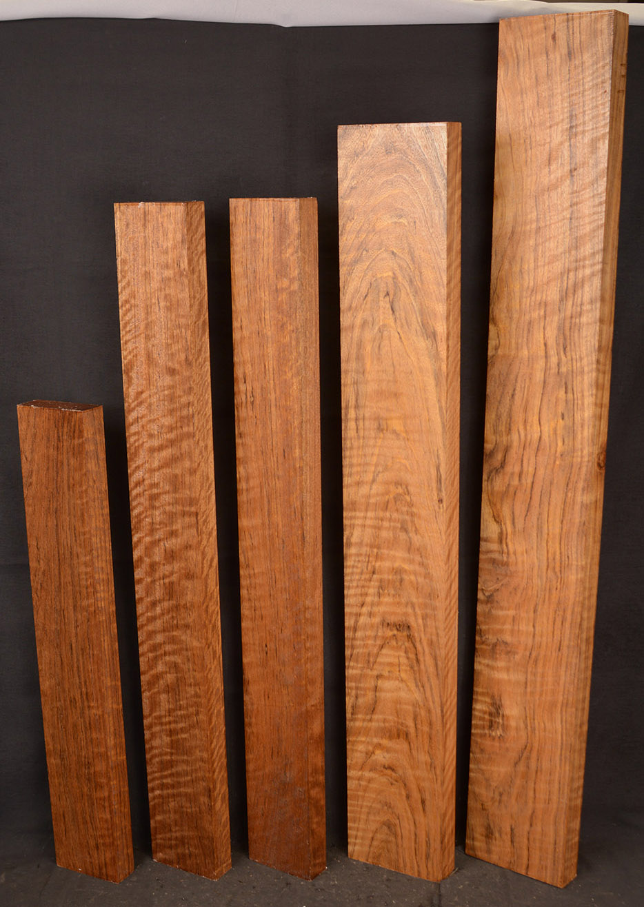 Also called Ovangkol and Amazakoue. This wood is increasingly becoming popular as an acoustic guitar wood. The color varies from a rich, golden brown to a lustrous grayish brown usually with a black stripe.