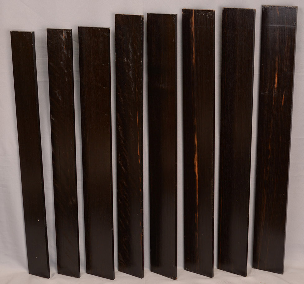 Sometimes called Gabon or Gaboon, this Ebony is sometimes jet black but oftentimes has grayish streaks that mostly disappear when finished or after the made object has been put into service. This Ebony has a marked resistance to checking that is characteristic of some of the Indian and Asian species. It has a wonderful texture and is easily carved, planed, turned, and milled. It is fairly fine-grained and takes a high polish. This Ebony usually originates in either Cameroon or Nigeria and the logs are rough hewn in the forest and oftentimes brought to the nearest road by human porters. With the disappearance of other species of black Ebony this species is fast becoming the Ebony of choice.