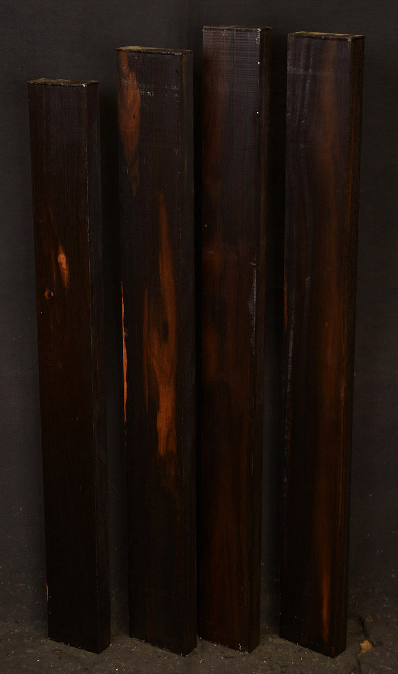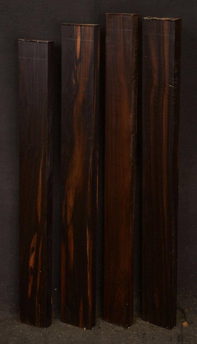 Sometimes called Gabon or Gaboon, this Ebony is sometimes jet black but oftentimes has grayish streaks that mostly disappear when finished or after the made object has been put into service. This Ebony has a marked resistance to checking that is characteristic of some of the Indian and Asian species. It has a wonderful texture and is easily carved, planed, turned, and milled. It is fairly fine-grained and takes a high polish. This Ebony usually originates in either Cameroon or Nigeria and the logs are rough hewn in the forest and oftentimes brought to the nearest road by human porters. With the disappearance of other species of black Ebony this species is fast becoming the Ebony of choice.