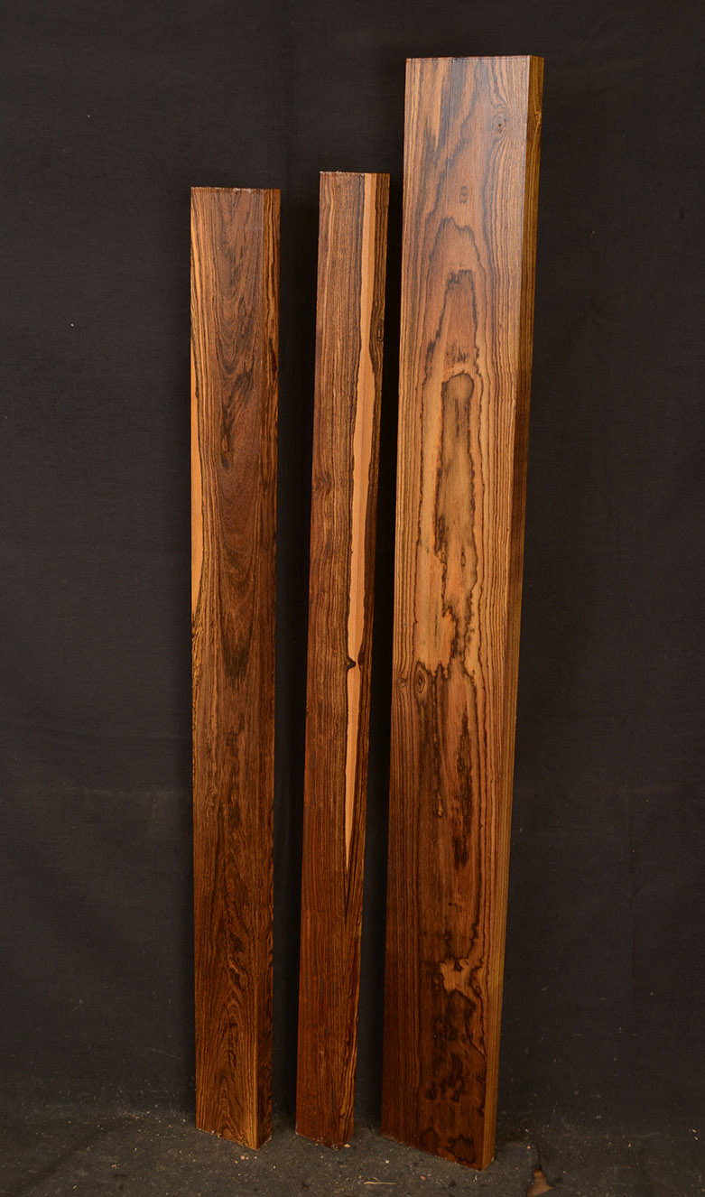 Bocote is an oily wood with a yellowish to dark brown color accented with irregular black stripes and streaks. It has a spicy smell and is hard, heavy and strong. It is easy to work and takes a very nice polish. This beautiful wood is seldom seen in woodworker's shops.