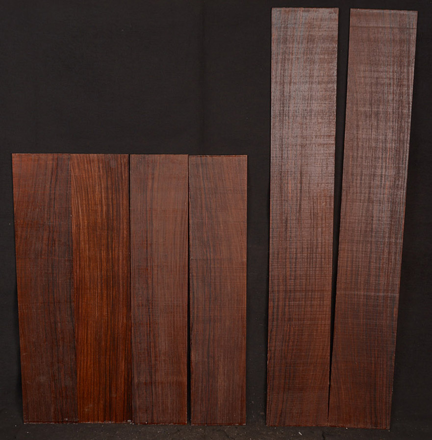 This Rosewood species has a reddish-brown to dark brown colored heartwood contrasting the almost white sapwood. The dust has a sweet odor. It is an excellent furniture/case works/jewelry box wood and even though it has a medium texture it does take a nice polish. We also offer it as a musical instrument wood (see guitar fingerboards and backs & sides elsewhere on the site). It has a very "crisp" tap tone with good sustain.