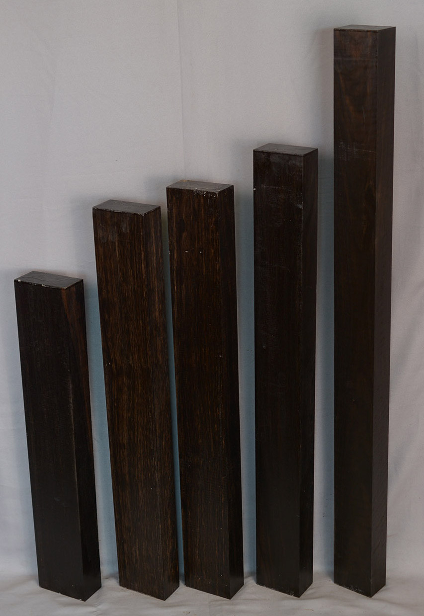 Sometimes called Gabon or Gaboon, this Ebony is sometimes jet black but oftentimes has grayish streaks that mostly disappear when finished or after the made object has been put into service. This Ebony has a marked resistance to checking that is characteristic of some of the Indian and Asian species. It has a wonderful texture and is easily carved, planed, turned, and milled. It is fairly fine-grained and takes a high polish. This Ebony usually originates in either Cameroon or Nigeria and the logs are rough hewn in the forest and oftentimes brought to the nearest road by human porters. With the disappearance of other species of black Ebony this species is fast becoming the Ebony of choice.