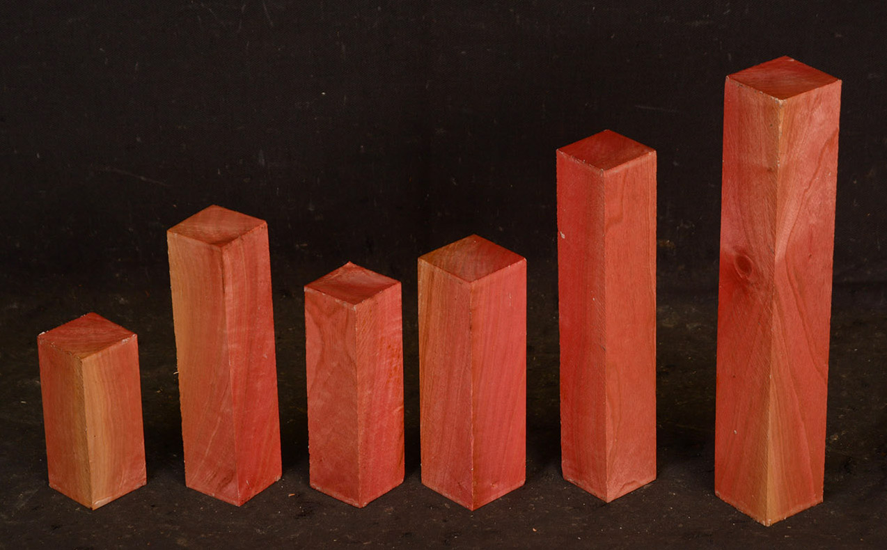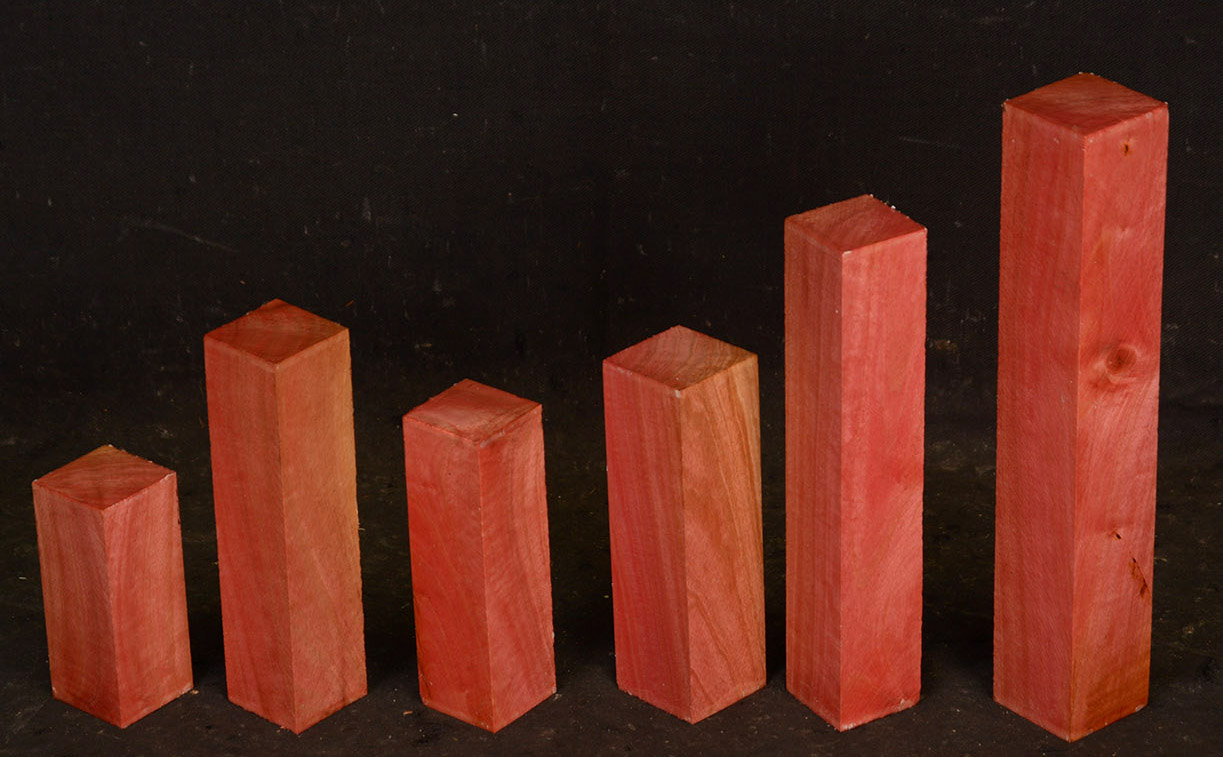 A fairly rare wood from Southern Africa ranging in color from light pink to watermelon red. At one time it was described as being "rarer than diamonds". It is very dense, hard and heavy and takes a very high polish. Beautiful for turnery, inlays and other precious items.
