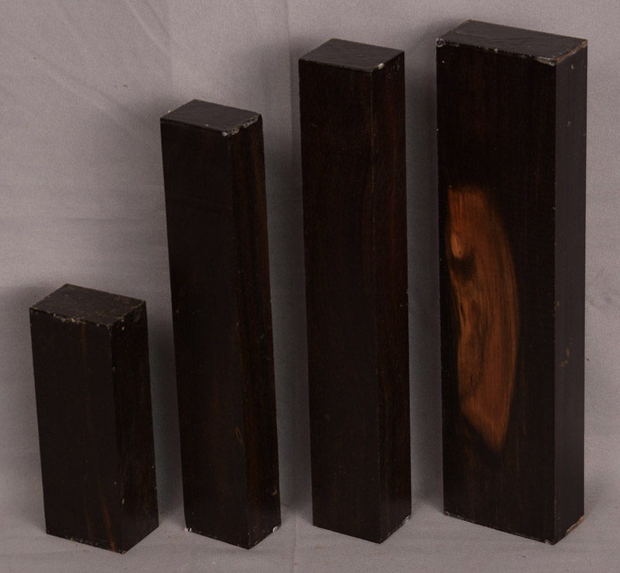Sometimes called Gabon or Gaboon, this Ebony is sometimes jet black but oftentimes has grayish streaks that mostly disappear when finished or after the made object has been put into service. This Ebony has a marked resistance to checking that is characteristic of some of the Indian and Asian species. It has a wonderful texture and is easily carved, planed, turned, and milled. It is fairly fine-grained and takes a high polish. This Ebony usually originates in either Cameroon or Nigeria and the logs are rough hewn in the forest and oftentimes brought to the nearest road by human porters. With the disappearance of other species of black Ebony this species is fast becoming the Ebony of choice.