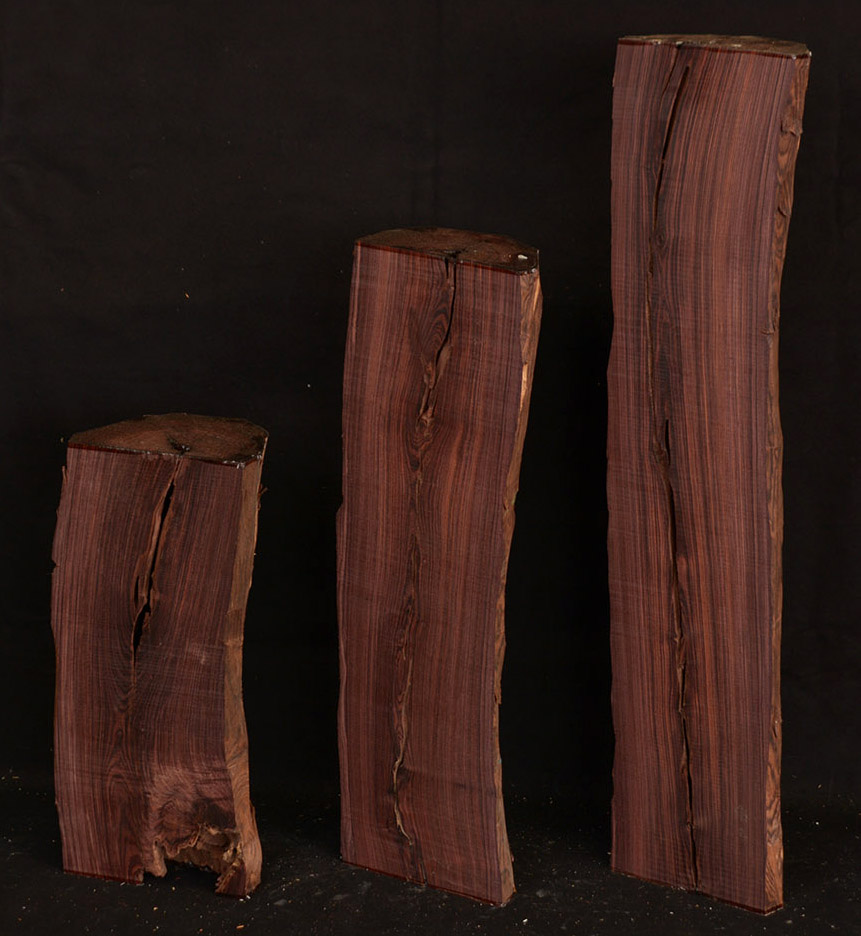 A true rosewood. The wood is variegated with different shades of purple and darker stripes. The specific gravity is 1.2 so it is hard and heavy. Used for inlays and bandings, turnery, and fancy furniture accessories.