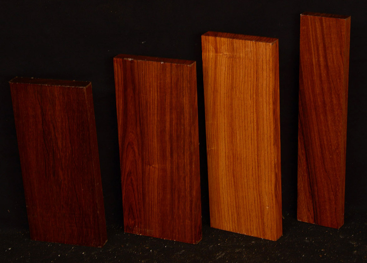 This Rosewood species has a reddish-brown to dark brown colored heartwood contrasting the almost white sapwood. The dust has a sweet odor. It is an excellent furniture/case works/jewelry box wood and even though it has a medium texture it does take a nice polish. We also offer it as a musical instrument wood (see guitar fingerboards and backs & sides elsewhere on the site). It has a very "crisp" tap tone with good sustain.