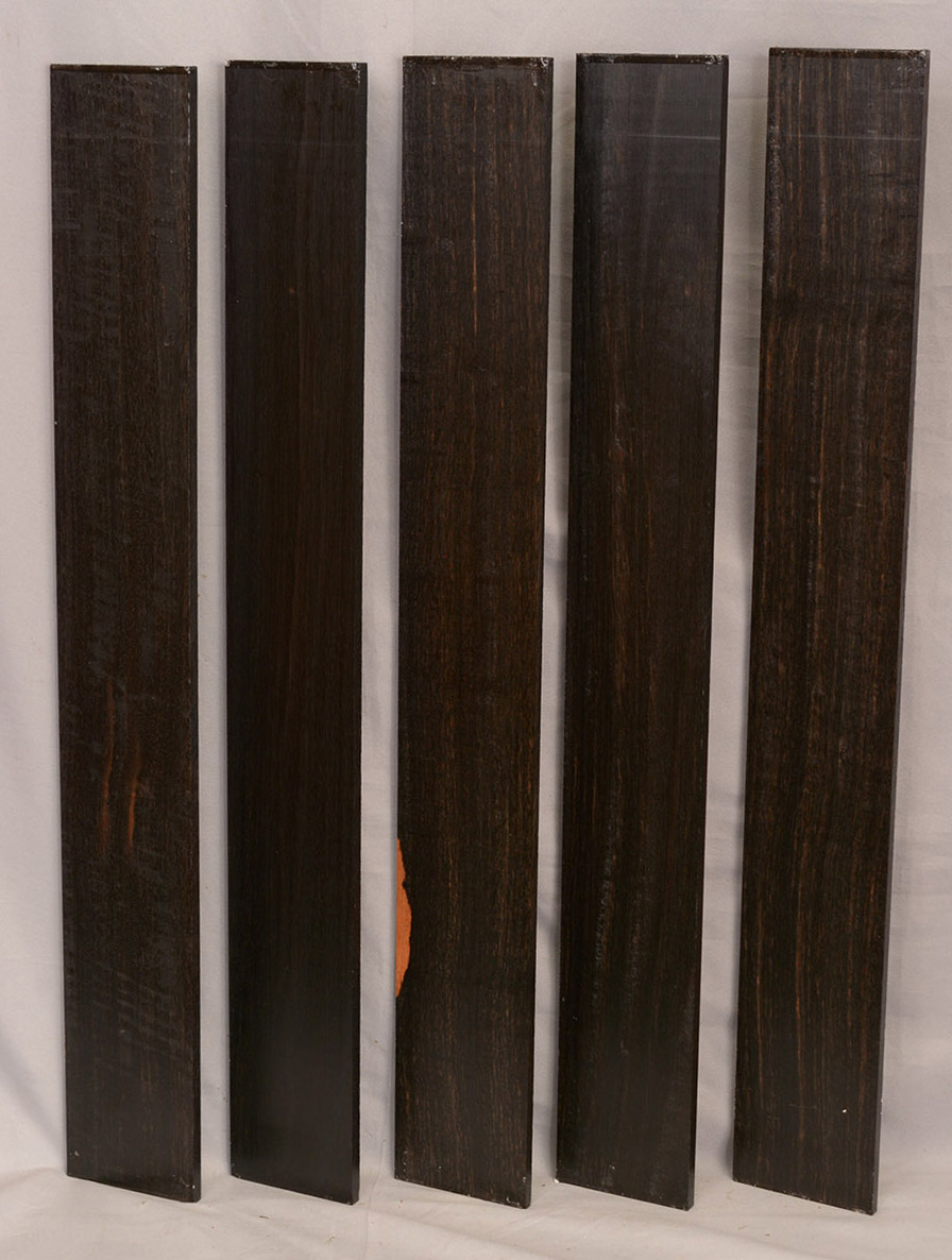 Sometimes called Gabon or Gaboon, this Ebony is sometimes jet black but oftentimes has grayish streaks that mostly disappear when finished or after the made object has been put into service. This Ebony has a marked resistance to checking that is characteristic of some of the Indian and Asian species. It has a wonderful texture and is easily carved, planed, turned, and milled. It is fairly fine-grained and takes a high polish. This Ebony usually originates in either Cameroon or Nigeria and the logs are rough hewn in the forest and oftentimes brought to the nearest road by human porters. With the disappearance of other species of black Ebony this species is fast becoming the Ebony of choice.