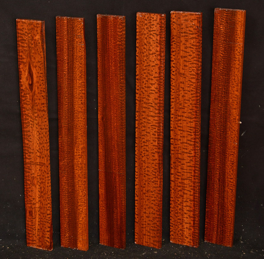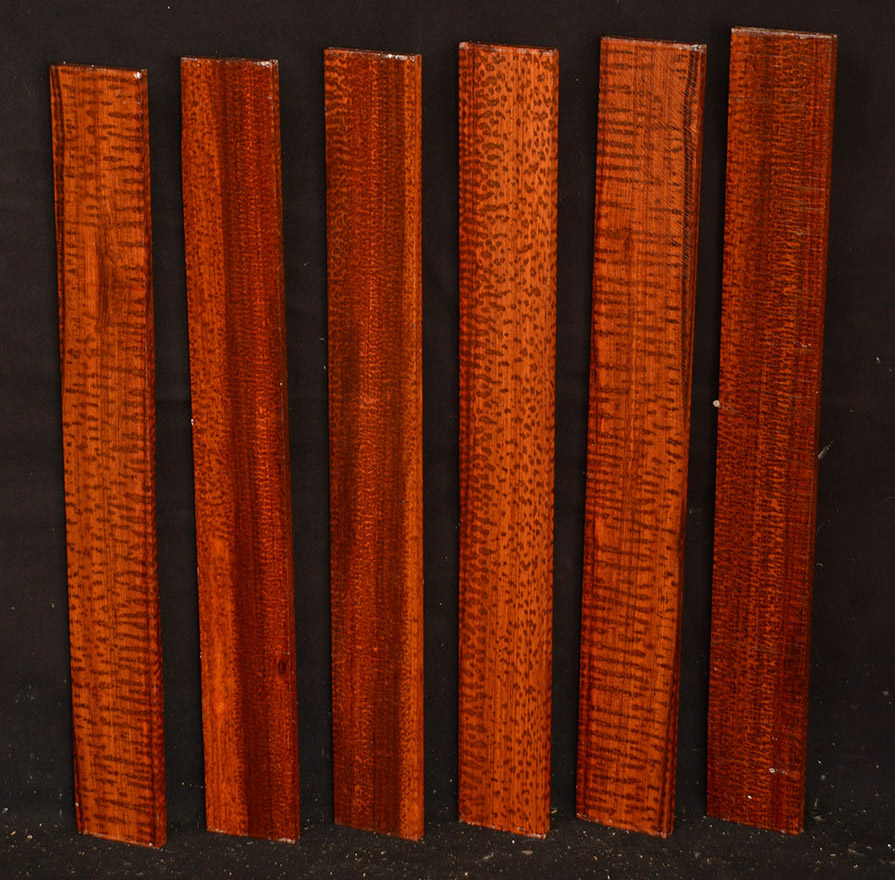 Also called Letterwood and Leopardwood. Color: dark red to reddish brown with irregular black speckles or stripes. Fine textured and highly lustrous. Very hard and heavy, 75-84 lbs/cu ft. Takes a beautiful finish. Very rare and very expensive. Guyana and Surinam.