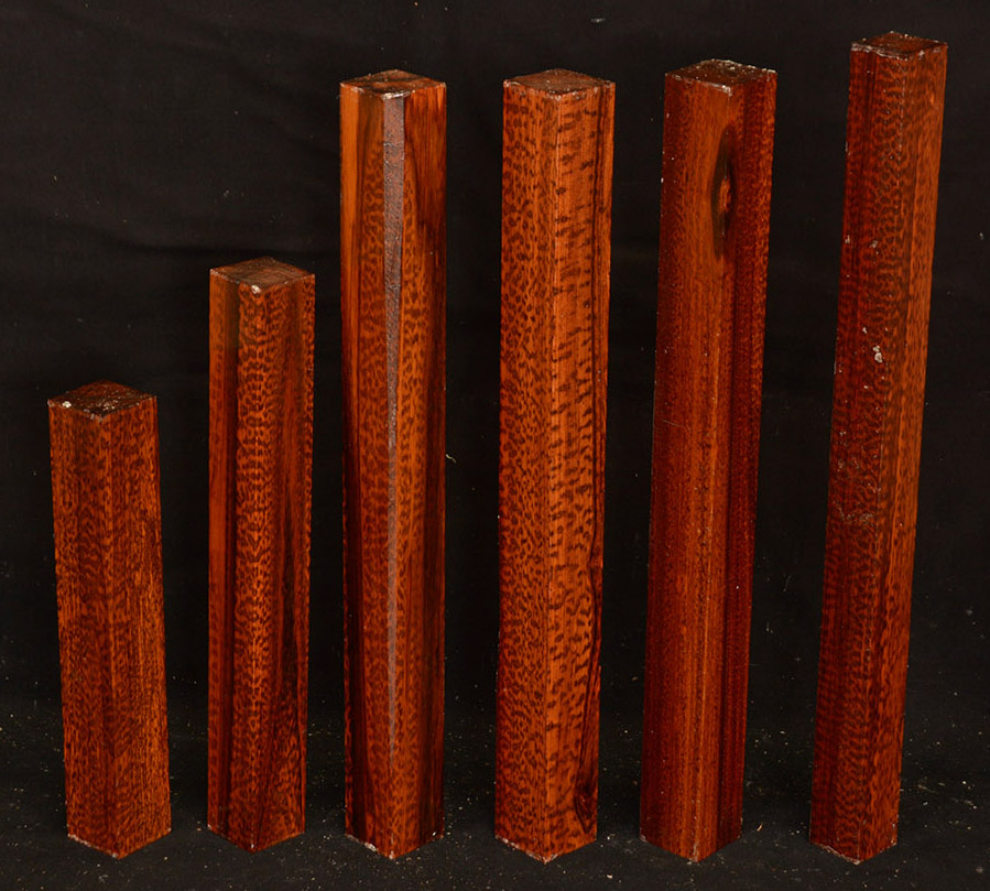 Also called Letterwood and Leopardwood. Color: dark red to reddish brown with irregular black speckles or stripes. Fine textured and highly lustrous. Very hard and heavy, 75-84 lbs/cu ft. Takes a beautiful finish. Very rare and very expensive. Guyana and Surinam.