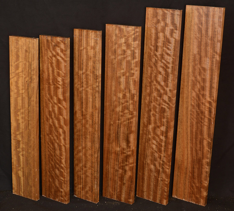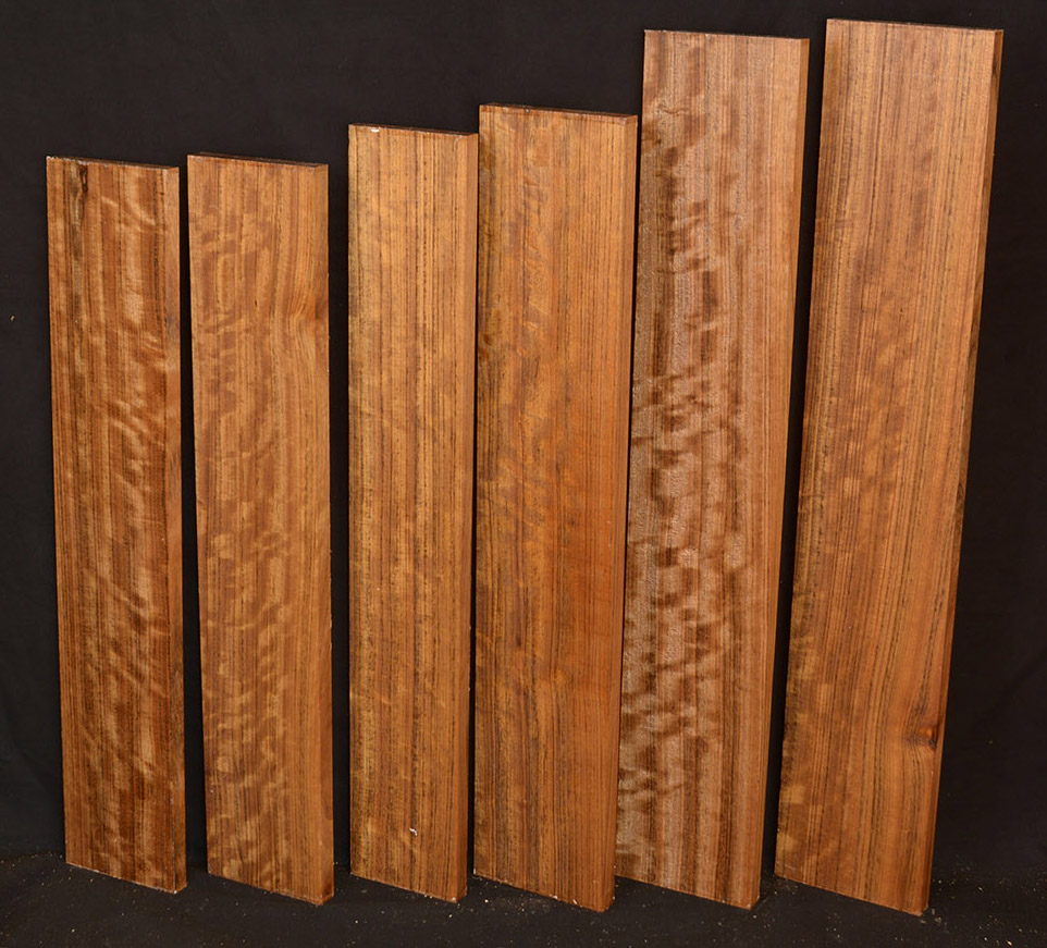 Also called Ovangkol and Amazakoue. This wood is increasingly becoming popular as an acoustic guitar wood. The color varies from a rich, golden brown to a lustrous grayish brown usually with a black stripe.
