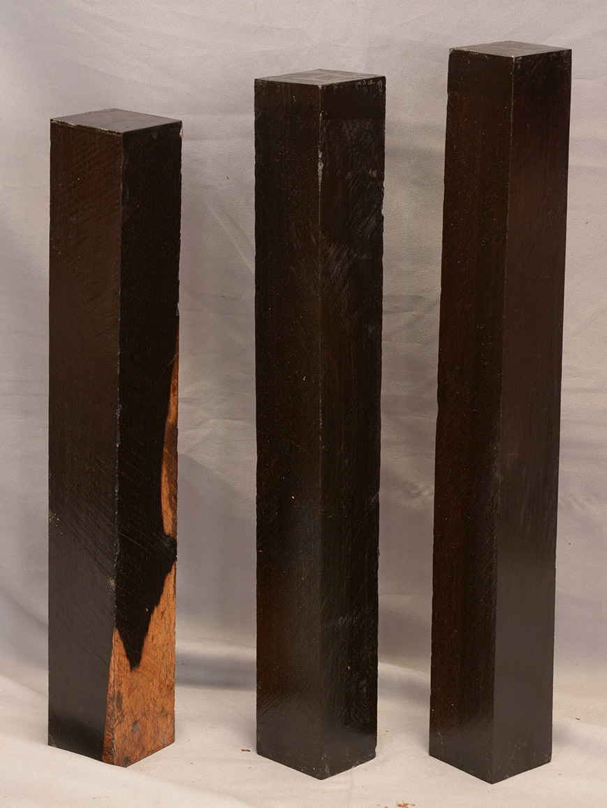 The heartwood is purplish to brownish-black with dark gray streaks giving an overall impression of being black. Lustrous with an attractive inner chatoyance. Very hard, heavy, close-grained, and virtually free from pores. Its stability and lovely tonal qualities make it an excellent instrument wood.