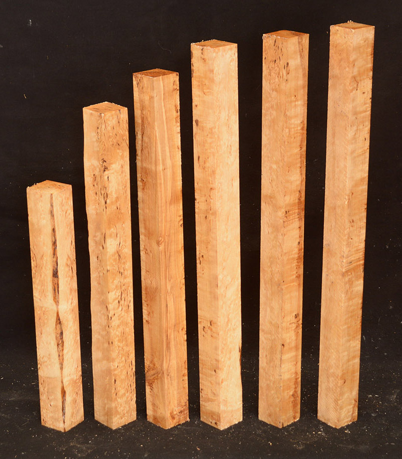 Also called Alpine Burl or Karelian Burl after the Finnish province of Karelia where it is often found. The high figure found in this wood is caused when the tree heals the damage done by an invasive boring beetle. The beetle infestation leaves the trees stunted and sometimes deformed but produces wood with small twists and swirls that highlight the darker, burly figure. Rare.