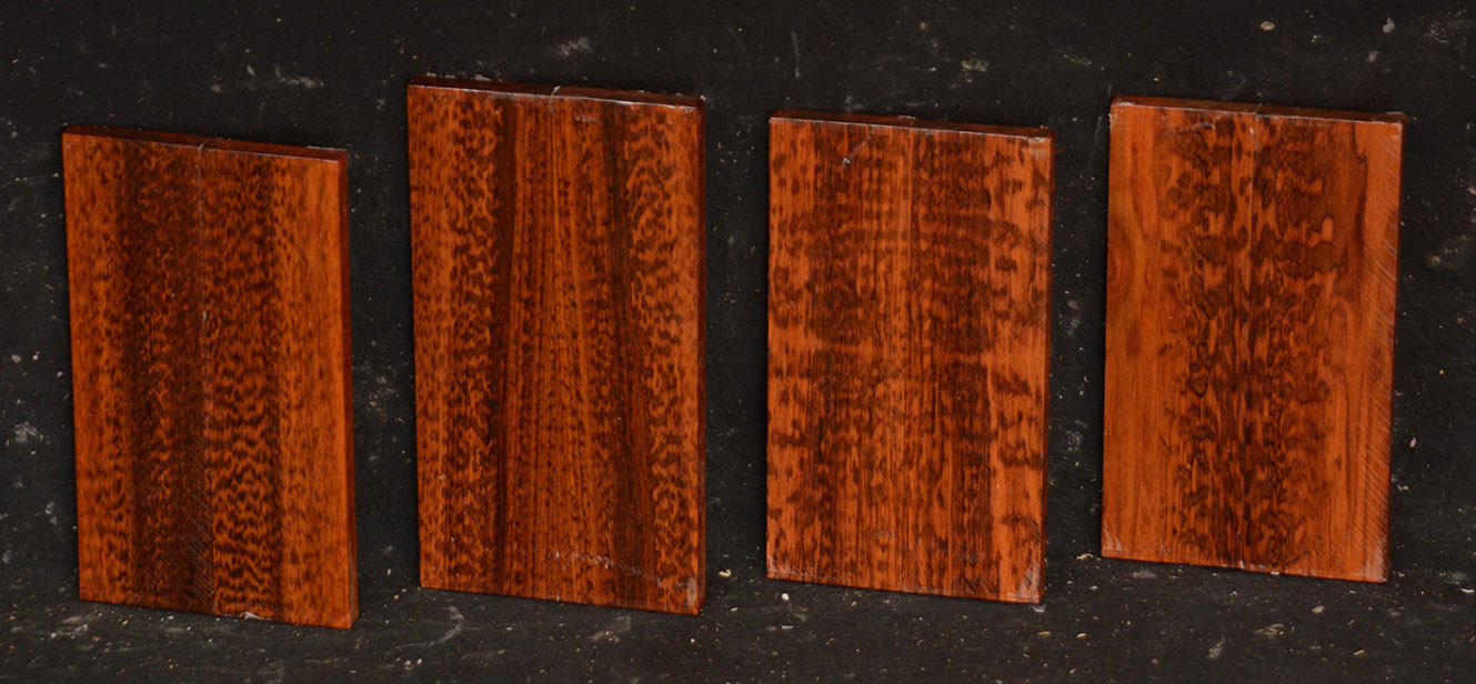 Also called Letterwood and Leopardwood. Color: dark red to reddish brown with irregular black speckles or stripes. Fine textured and highly lustrous. Very hard and heavy, 75-84 lbs/cu ft. Takes a beautiful finish. Very rare and very expensive. Guyana and Surinam.