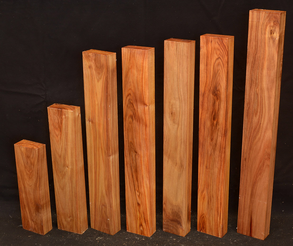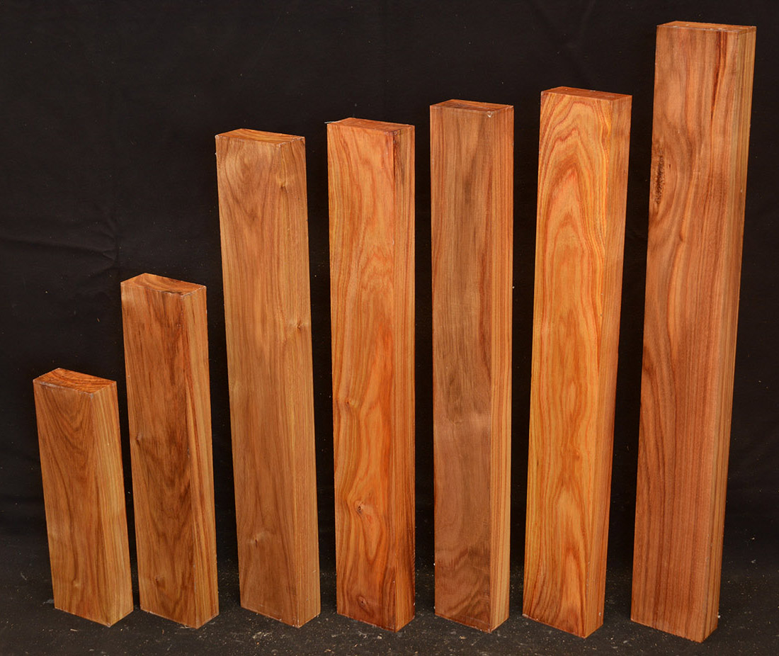 This Brazilian hardwood is occasionally seen to have the bright, brilliantly hued colors as found in these boards. It has medium density and is easy to work and finish. Kiln-dried.