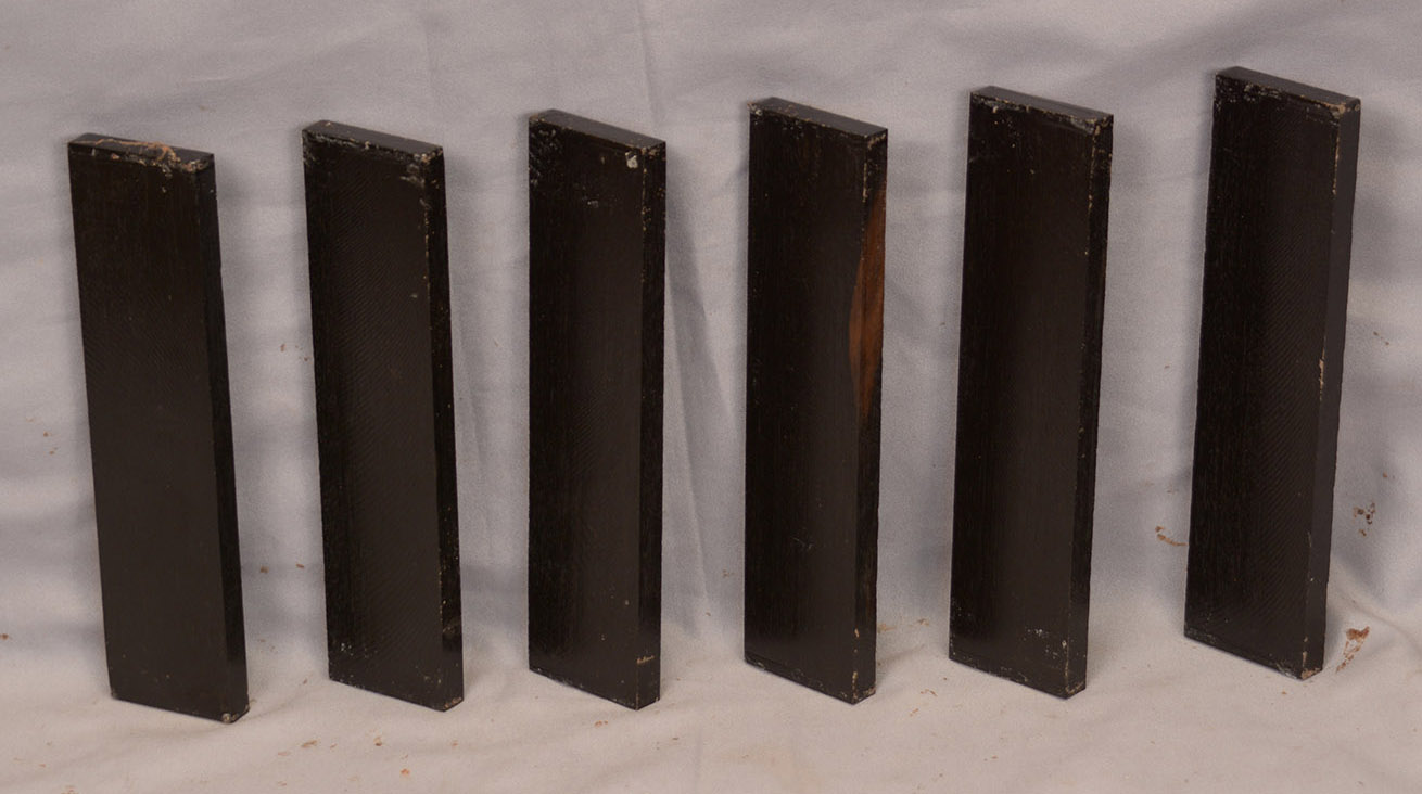 Sometimes called Gabon or Gaboon, this Ebony is sometimes jet black but oftentimes has grayish streaks that mostly disappear when finished or after the made object has been put into service. This Ebony has a marked resistance to checking that is characteristic of some of the Indian and Asian species. It has a wonderful texture and is easily carved, planed, turned, and milled. It is fairly fine-grained and takes a high polish. This Ebony usually originates in either Cameroon or Nigeria and the logs are rough hewn in the forest and oftentimes brought to the nearest road by human porters. With the disappearance of other species of black Ebony this species is fast becoming the Ebony of choice.