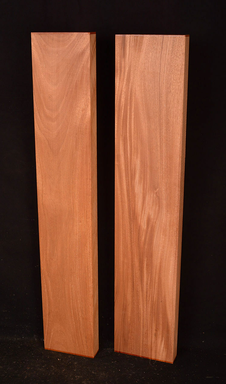 Also called Acajou, Tropical American Mahogany, and Honduras Mahogany. This medium to large tree occurs throughout Central and South America. Related to Cuban Mahogany (Swietenia mahogani) and Pacific Coast Mahogany (Swietenia humilis). It produces one of the classic furniture and cabinetmaking woods. The heartwood varies from a light reddish-brown to a rich, dark red. Generally straight grained and exceptionally stable, it is easy to machine, hand plane, sand and finish. Occasional logs produce several figures, curly, quilted, and the rare plum pudding figure which looks like large drips running down the board. Used in fine furniture and joinery, boat building, and in the guitar industry for acoustic sets and necks.