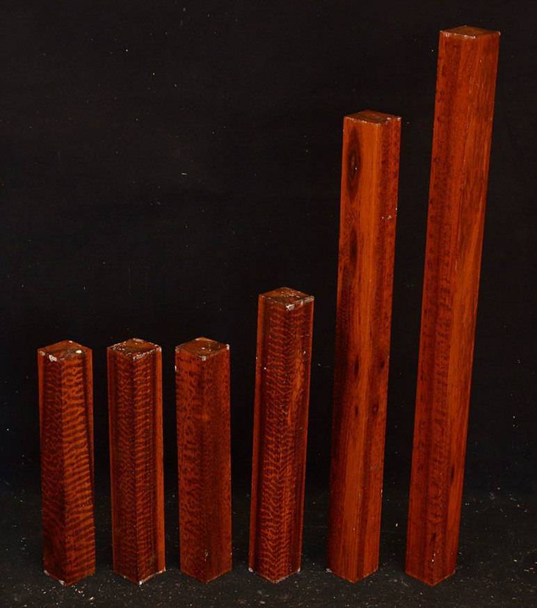Also called Letterwood and Leopardwood. Color: dark red to reddish brown with irregular black speckles or stripes. Fine textured and highly lustrous. Very hard and heavy, 75-84 lbs/cu ft. Takes a beautiful finish. Very rare and very expensive. Guyana and Surinam.