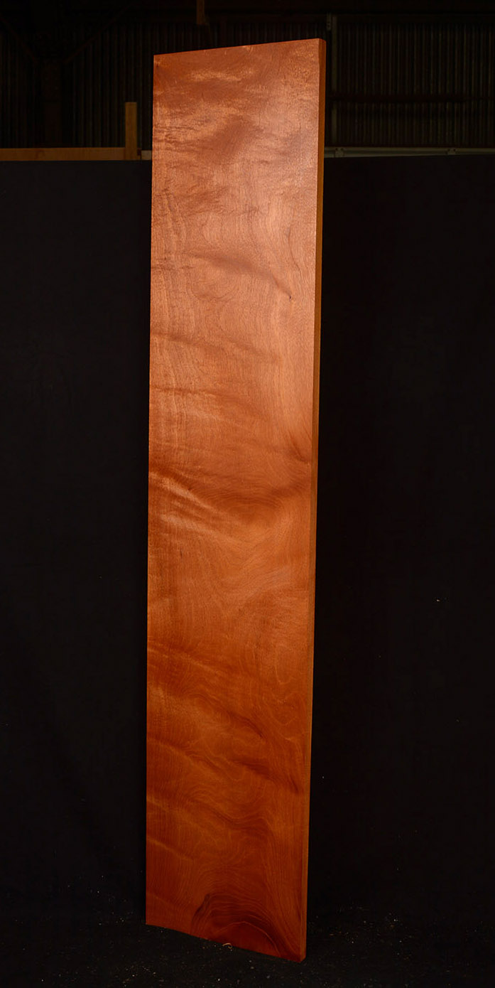Also called Acajou, Tropical American Mahogany, and Honduras Mahogany. This medium to large tree occurs throughout Central and South America. Related to Cuban Mahogany (Swietenia mahogani) and Pacific Coast Mahogany (Swietenia humilis). It produces one of the classic furniture and cabinetmaking woods. The heartwood varies from a light reddish-brown to a rich, dark red. Generally straight grained and exceptionally stable, it is easy to machine, hand plane, sand and finish. Occasional logs produce several figures, curly, quilted, and the rare plum pudding figure which looks like large drips running down the board. Used in fine furniture and joinery, boat building, and in the guitar industry for acoustic sets and necks.
