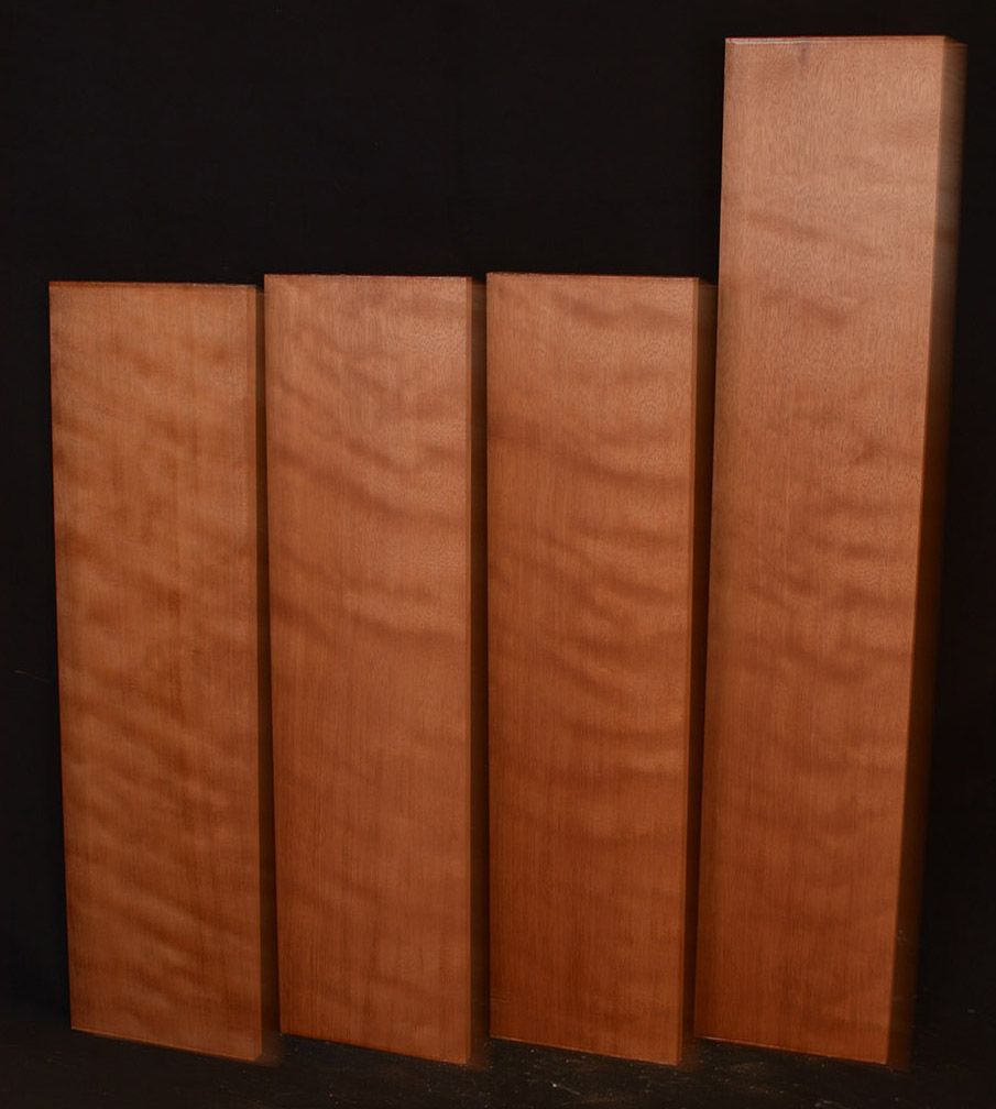 Also called Acajou, Tropical American Mahogany, and Honduras Mahogany. This medium to large tree occurs throughout Central and South America. Related to Cuban Mahogany (Swietenia mahogani) and Pacific Coast Mahogany (Swietenia humilis). It produces one of the classic furniture and cabinetmaking woods. The heartwood varies from a light reddish-brown to a rich, dark red. Generally straight grained and exceptionally stable, it is easy to machine, hand plane, sand and finish. Occasional logs produce several figures, curly, quilted, and the rare plum pudding figure which looks like large drips running down the board. Used in fine furniture and joinery, boat building, and in the guitar industry for acoustic sets and necks.