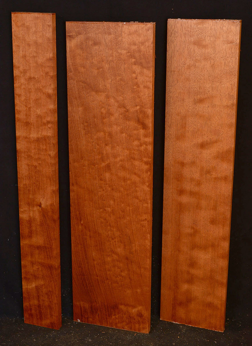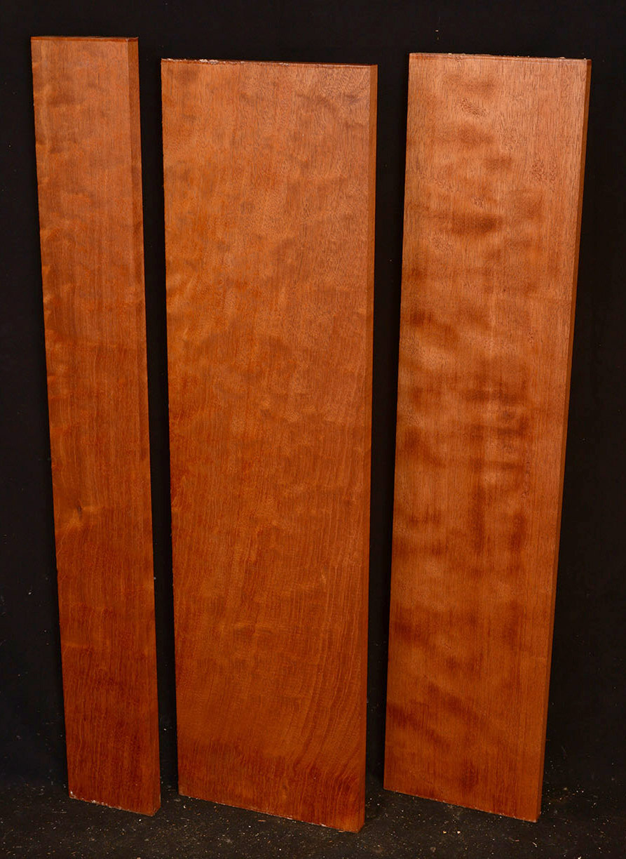 Also called Acajou, Tropical American Mahogany, and Honduras Mahogany. This medium to large tree occurs throughout Central and South America. Related to Cuban Mahogany (Swietenia mahogani) and Pacific Coast Mahogany (Swietenia humilis). It produces one of the classic furniture and cabinetmaking woods. The heartwood varies from a light reddish-brown to a rich, dark red. Generally straight grained and exceptionally stable, it is easy to machine, hand plane, sand and finish. Occasional logs produce several figures, curly, quilted, and the rare plum pudding figure which looks like large drips running down the board. Used in fine furniture and joinery, boat building, and in the guitar industry for acoustic sets and necks.