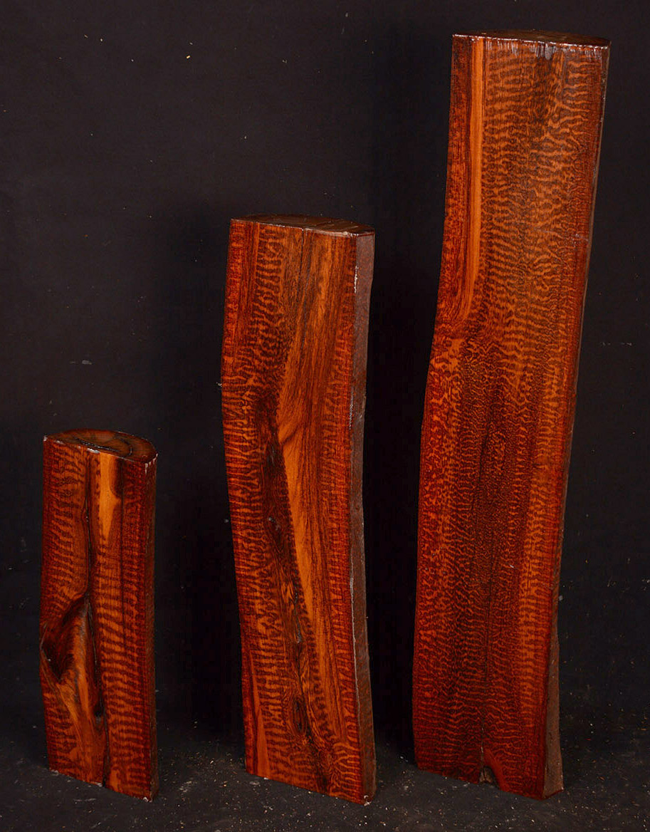 Also called Letterwood and Leopardwood. Color: dark red to reddish brown with irregular black speckles or stripes. Fine textured and highly lustrous. Very hard and heavy, 75-84 lbs/cu ft. Takes a beautiful finish. Very rare and very expensive. Guyana and Surinam.
