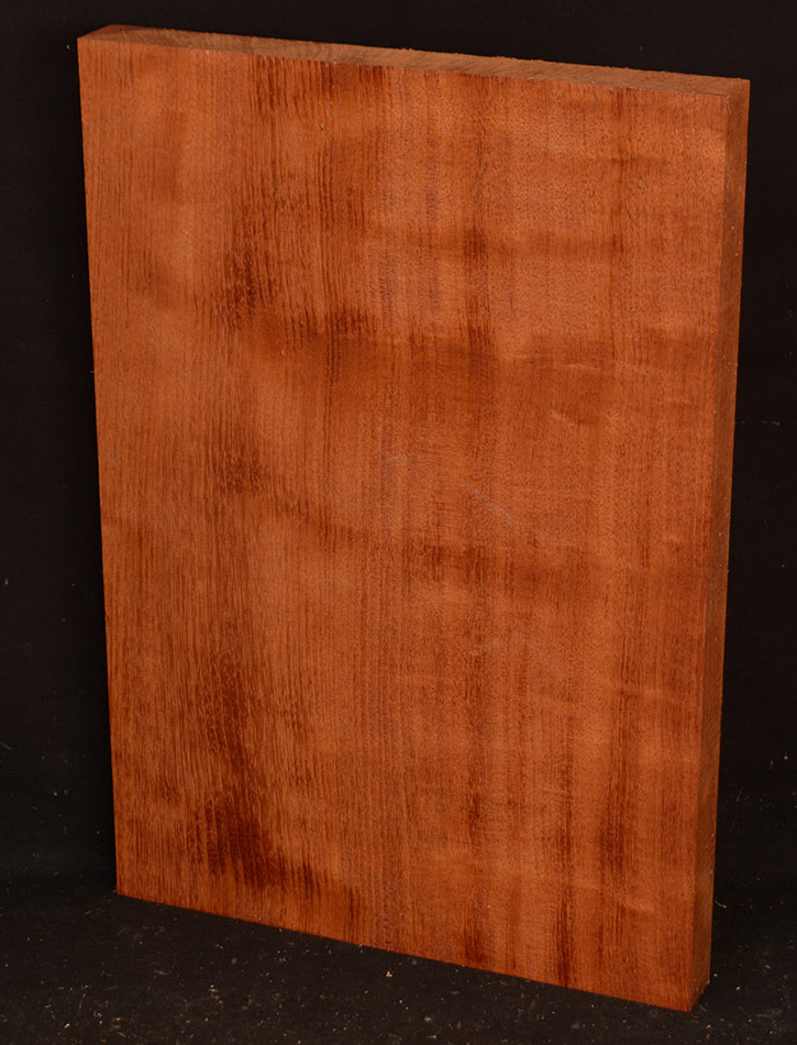 Also called Acajou, Tropical American Mahogany, and Honduras Mahogany. This medium to large tree occurs throughout Central and South America. Related to Cuban Mahogany (Swietenia mahogani) and Pacific Coast Mahogany (Swietenia humilis). It produces one of the classic furniture and cabinetmaking woods. The heartwood varies from a light reddish-brown to a rich, dark red. Generally straight grained and exceptionally stable, it is easy to machine, hand plane, sand and finish. Occasional logs produce several figures, curly, quilted, and the rare plum pudding figure which looks like large drips running down the board. Used in fine furniture and joinery, boat building, and in the guitar industry for acoustic sets and necks.
