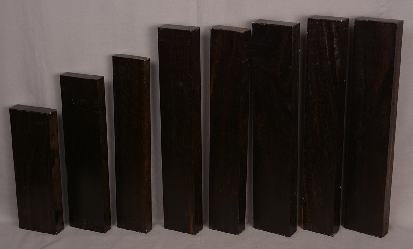 Sometimes called Gabon or Gaboon, this Ebony is sometimes jet black but oftentimes has grayish streaks that mostly disappear when finished or after the made object has been put into service. This Ebony has a marked resistance to checking that is characteristic of some of the Indian and Asian species. It has a wonderful texture and is easily carved, planed, turned, and milled. It is fairly fine-grained and takes a high polish. This Ebony usually originates in either Cameroon or Nigeria and the logs are rough hewn in the forest and oftentimes brought to the nearest road by human porters. With the disappearance of other species of black Ebony this species is fast becoming the Ebony of choice.