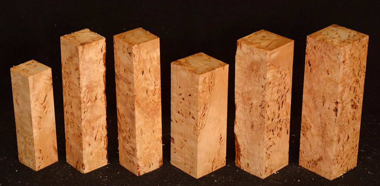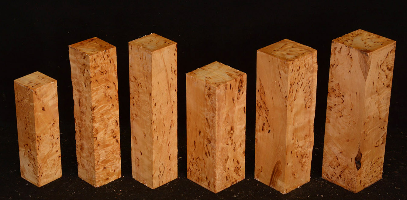 Also called Alpine Burl or Karelian Burl after the Finnish province of Karelia where it is often found. The high figure found in this wood is caused when the tree heals the damage done by an invasive boring beetle. The beetle infestation leaves the trees stunted and sometimes deformed but produces wood with small twists and swirls that highlight the darker, burly figure. Rare.