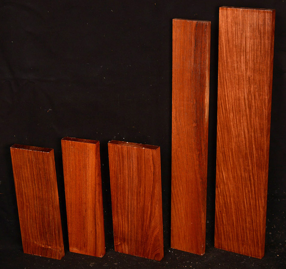 This Rosewood species has a reddish-brown to dark brown colored heartwood contrasting the almost white sapwood. The dust has a sweet odor. It is an excellent furniture/case works/jewelry box wood and even though it has a medium texture it does take a nice polish. We also offer it as a musical instrument wood (see guitar fingerboards and backs & sides elsewhere on the site). It has a very "crisp" tap tone with good sustain.