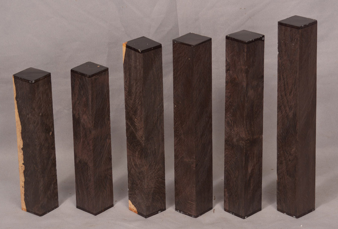 The heartwood is purplish to brownish-black with dark gray streaks giving an overall impression of being black. Lustrous with an attractive inner chatoyance. Very hard, heavy, close-grained, and virtually free from pores. Its stability and lovely tonal qualities make it an excellent instrument wood.