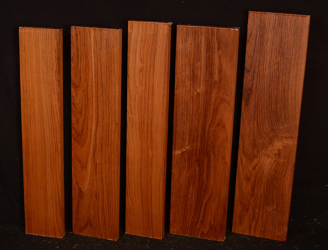 This Rosewood species has a reddish-brown to dark brown colored heartwood contrasting the almost white sapwood. The dust has a sweet odor. It is an excellent furniture/case works/jewelry box wood and even though it has a medium texture it does take a nice polish. We also offer it as a musical instrument wood (see guitar fingerboards and backs & sides elsewhere on the site). It has a very "crisp" tap tone with good sustain.