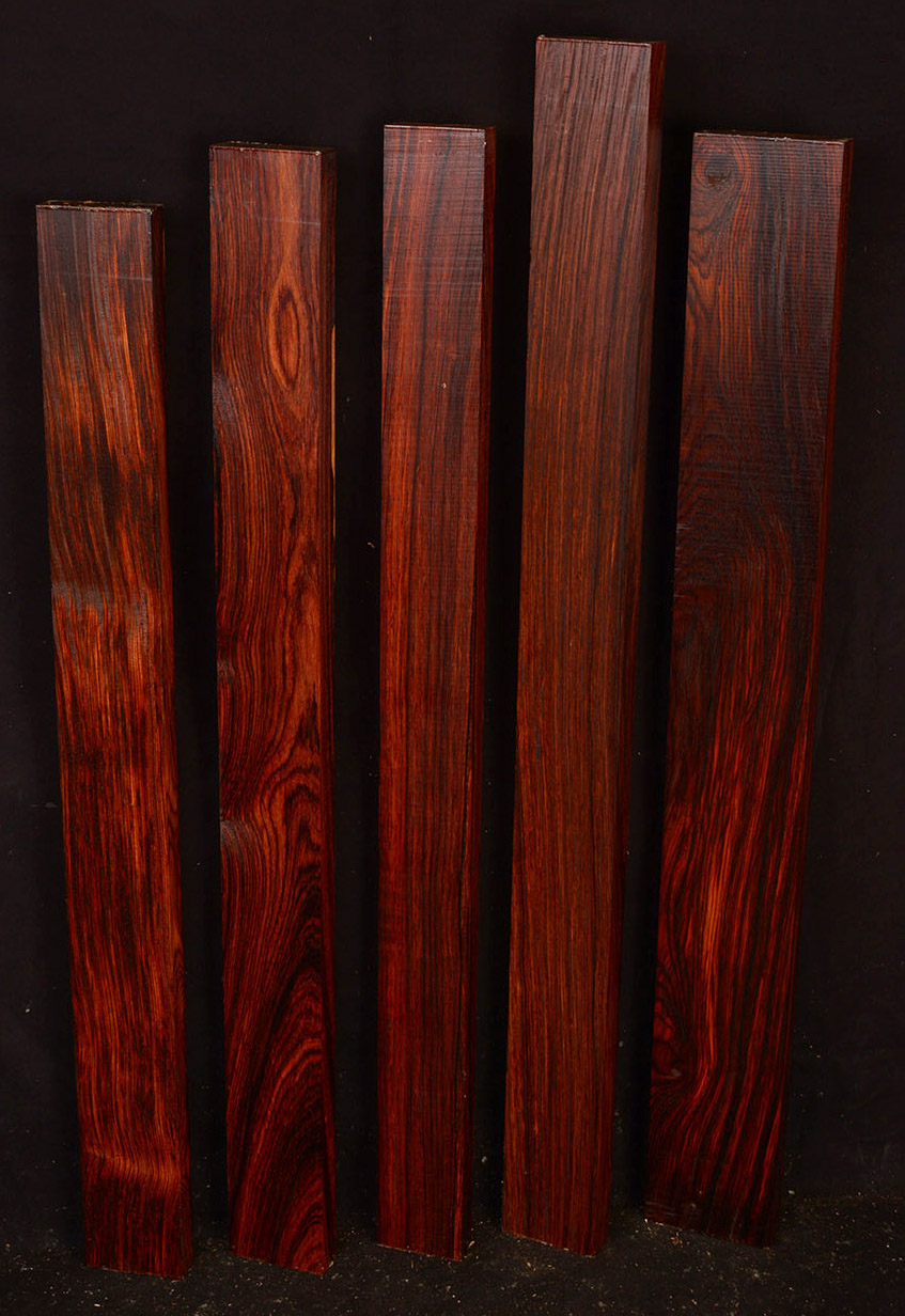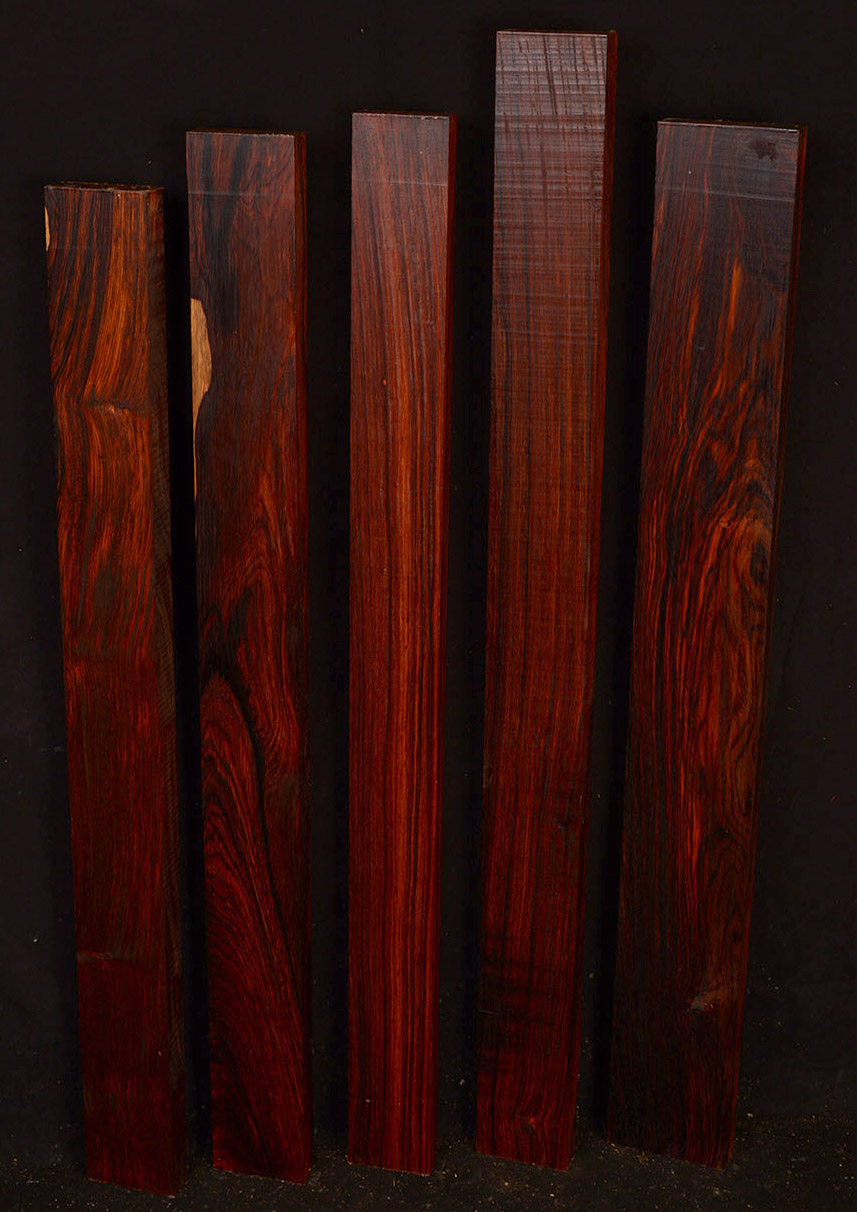 The wood is very oily which makes it difficult to glue but on the plus side the oiliness makes it easy to produce a fantastic polish on finished pieces. Wear a respirator mask when working Cocobolo as the dust can produce asthma-like reactions. Cocobolo is a small to medium sized tree and is found mainly in Mexico, Costa Rica, Nicaragua, and Panama.