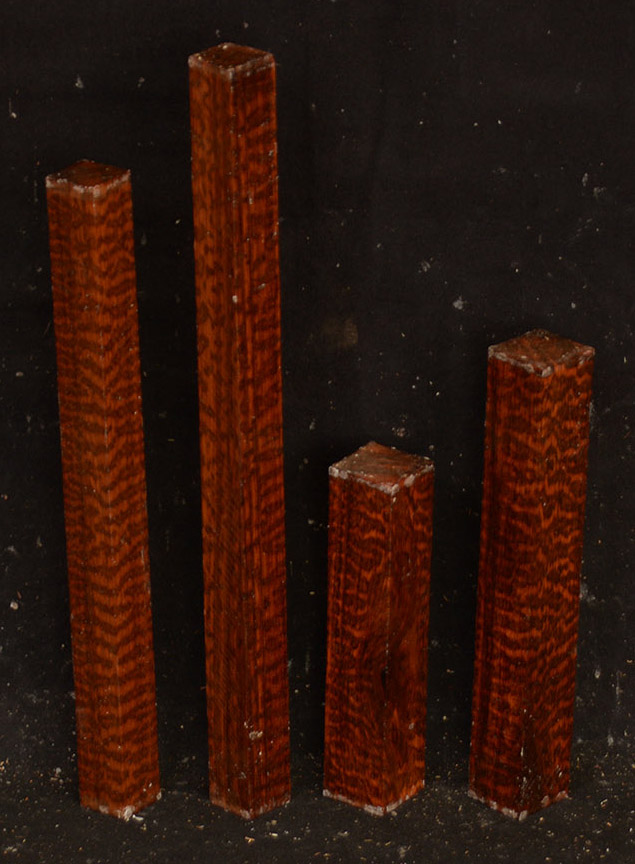 Also called Letterwood and Leopardwood. Color: dark red to reddish brown with irregular black speckles or stripes. Fine textured and highly lustrous. Very hard and heavy, 75-84 lbs/cu ft. Takes a beautiful finish. Very rare and very expensive. Guyana and Surinam.