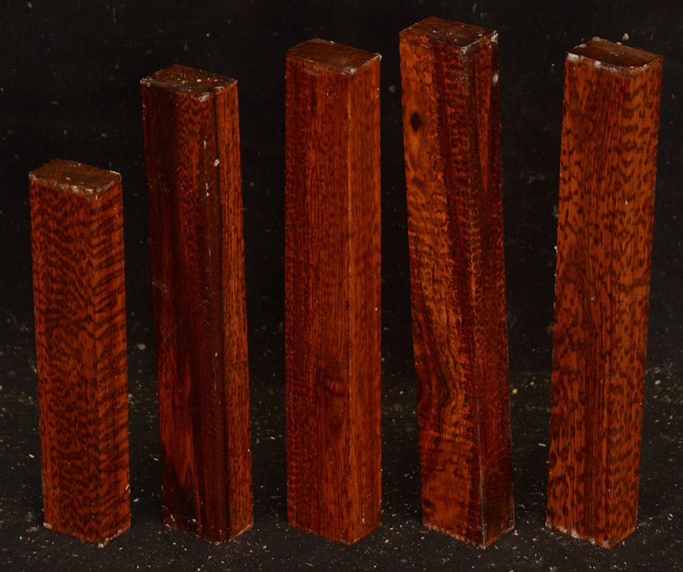 Also called Letterwood and Leopardwood. Color: dark red to reddish brown with irregular black speckles or stripes. Fine textured and highly lustrous. Very hard and heavy, 75-84 lbs/cu ft. Takes a beautiful finish. Very rare and very expensive. Guyana and Surinam.