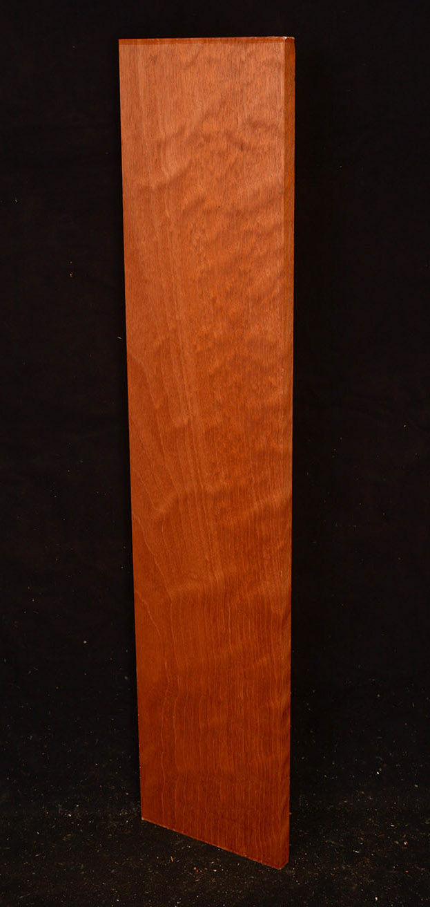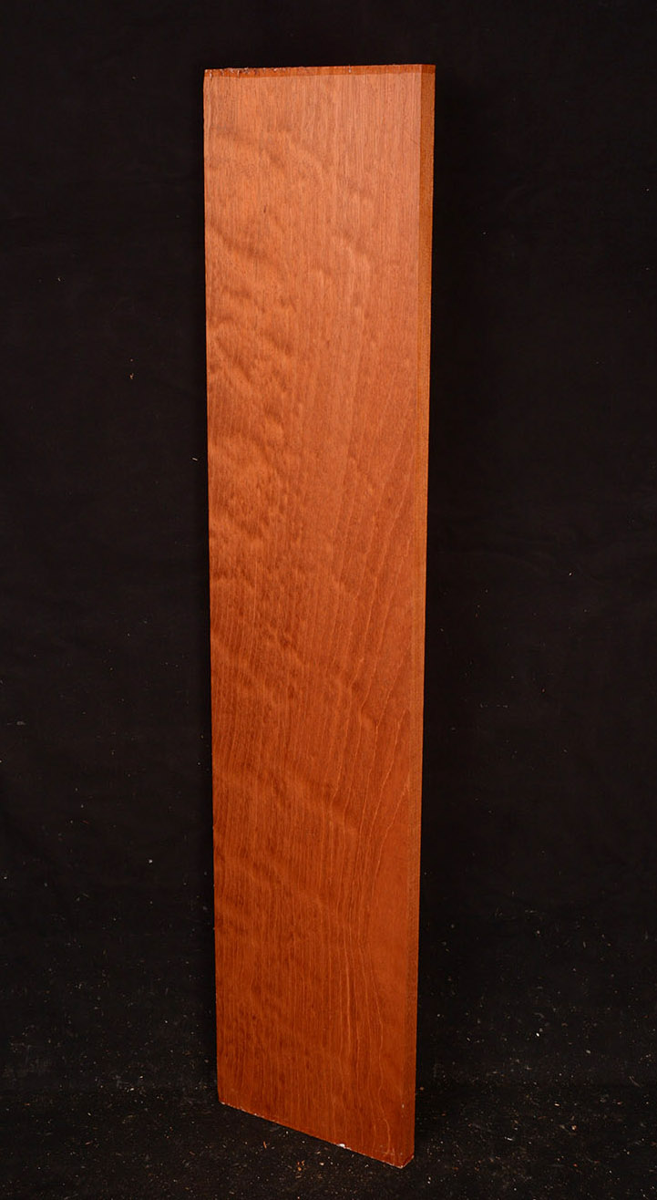 Also called Acajou, Tropical American Mahogany, and Honduras Mahogany. This medium to large tree occurs throughout Central and South America. Related to Cuban Mahogany (Swietenia mahogani) and Pacific Coast Mahogany (Swietenia humilis). It produces one of the classic furniture and cabinetmaking woods. The heartwood varies from a light reddish-brown to a rich, dark red. Generally straight grained and exceptionally stable, it is easy to machine, hand plane, sand and finish. Occasional logs produce several figures, curly, quilted, and the rare plum pudding figure which looks like large drips running down the board. Used in fine furniture and joinery, boat building, and in the guitar industry for acoustic sets and necks.