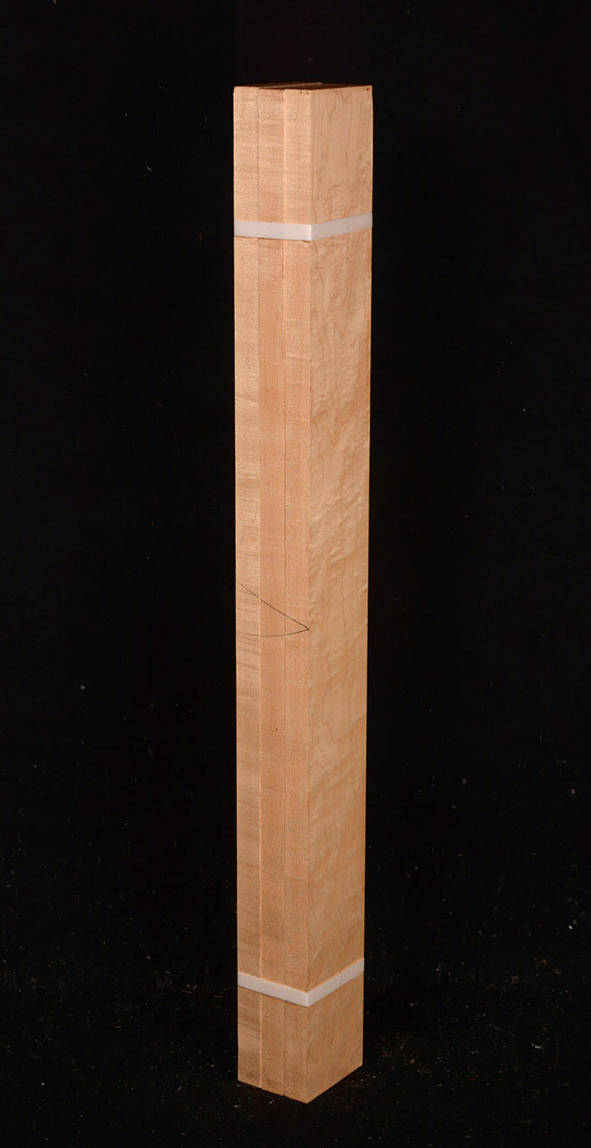 The heartwood is white or cream to light brown or reddish brown. Because of the generally small size of available logs, most sawmills produce flatsawn boards which will show a broken curl on the surface and a fiddleback curl on the quartersawn edge. Hard and heavy, 45 lbs/cu ft. Easy to work and takes a smooth polish. U.S.A.